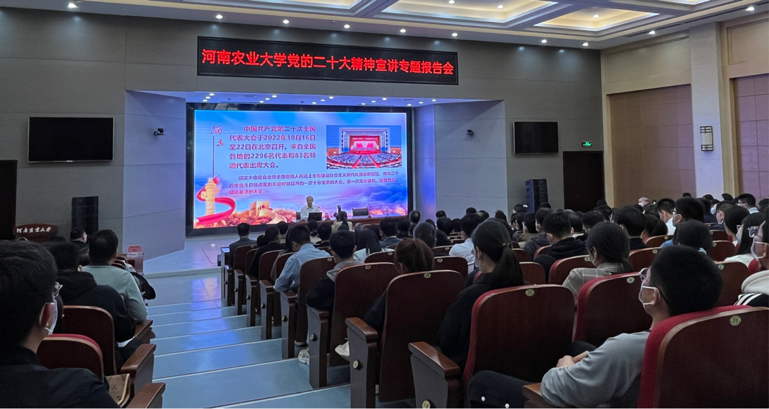 介晓磊从认真领会党的二十大主题及主要成果,过去5年的工作和新时代10年伟大变革、关于马克思主义中国化现代化、关于中国式现代化、关于全面建设社会主义现代化国家的目标任务、关于坚持党的全面领导和全面从严治党、关于应对风险挑战等方面,对党的二十大精神进行了系统阐释和深入解读。他强调,要把学习贯彻习近平总书记视察河南重要讲话精神与宣传贯彻党的二十大精神紧密结合起来,为全面建设社会主义现代化国家、全面推进中华民族伟大复兴贡献力量。要围绕习近平总书记关于高等教育的重要论述精神,立足学校办学实际,对标双一流大学建设目标,从大类招生、分型培养、前后贯通、个性发展方面在人才培养上探索“新路子”。