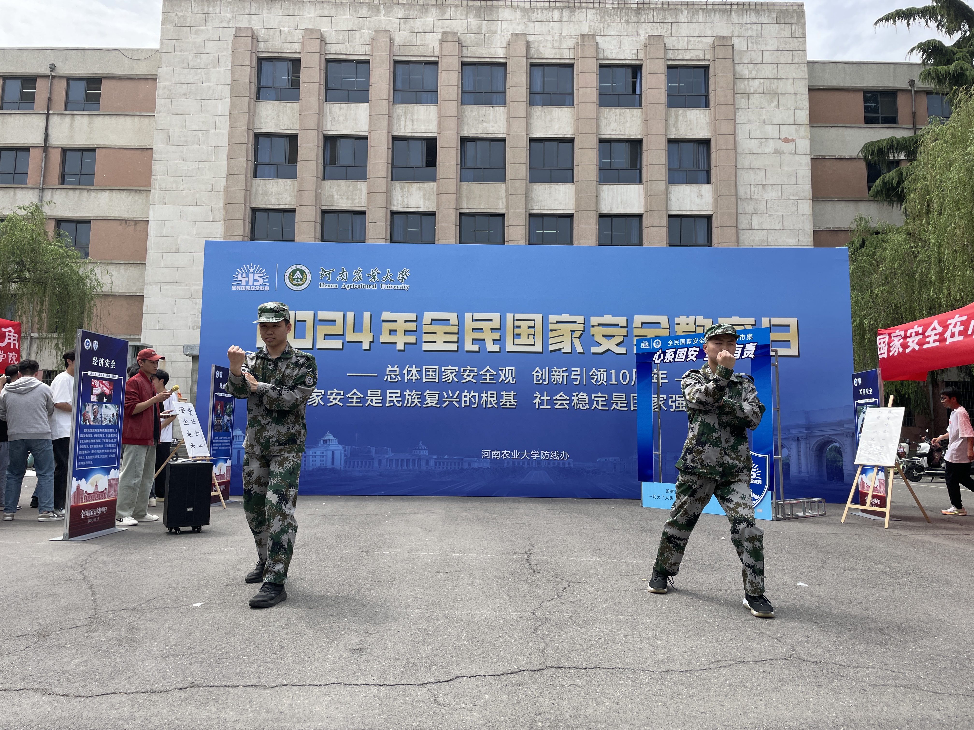 退伍复学学生代表现场进行了军体拳和军歌展示,学生党员代表带领全体党员进行集体宣誓,设置记忆大挑战、安全大转盘等一系列趣味小游戏,帮助广大师生更加深入地了解国家安全知识,号召青年大学生主动挺膺,勇担维护国家安全的时代使命。学生党支部以此为契机,开展“心系国家安全 守护万里河山”主题党日活动。