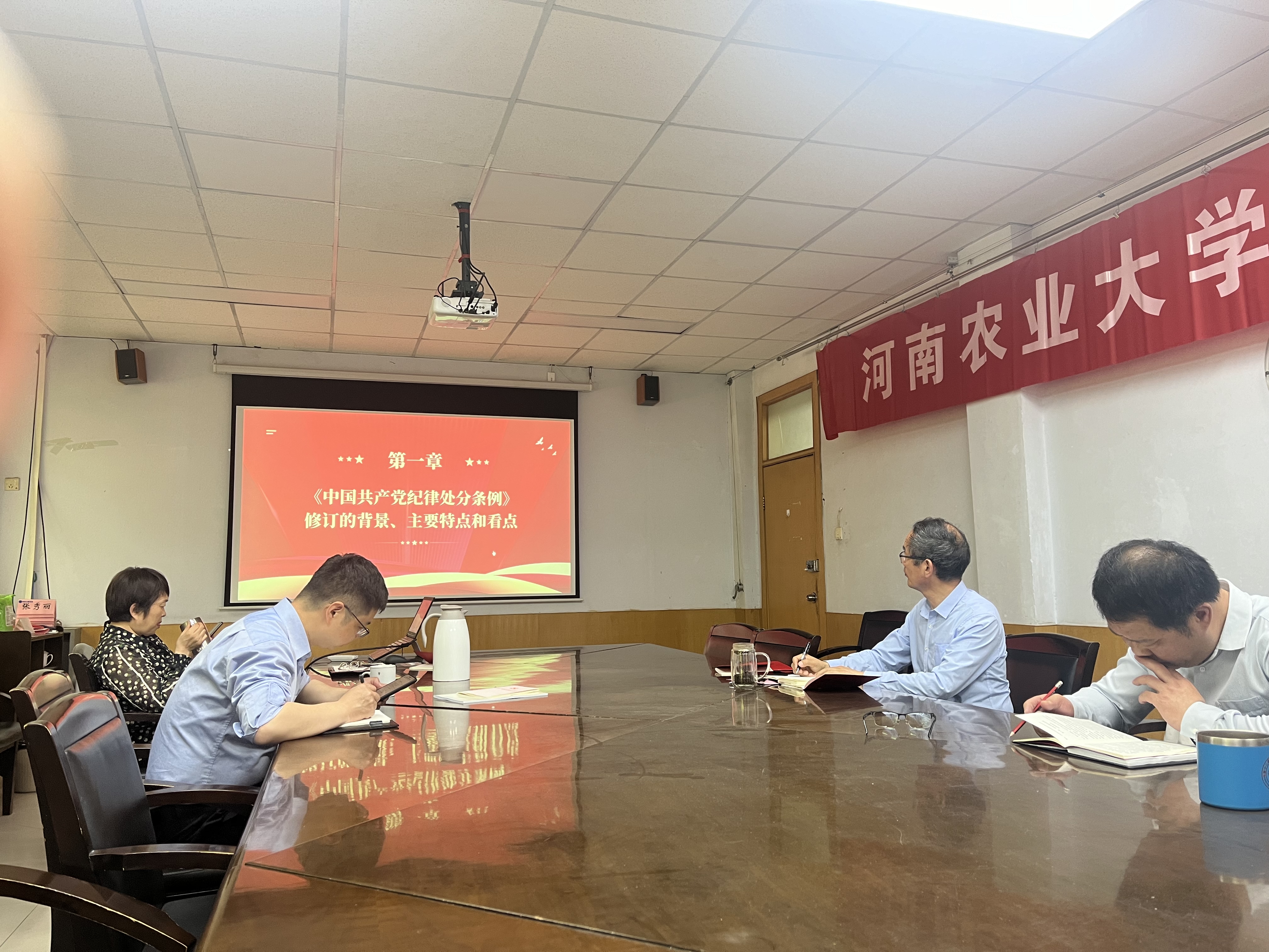 学院党委书记李世欣就《中国共产党纪律处分条例》学习内容,结合学院工作实际,强调几点要求:一是要时刻用党的纪律严格要求和约束自己,做好本职工作,推动全面从严治党向纵深发展。二是要以此次活动为契机,带领广大师生党员廉洁自律、守好党的纪律底线,做到学深悟透、学以致用。三是要带领广大师生深入学习贯彻《中国共产党纪律处分条例》,在准确把握全面从严治党新形势中统一思想。