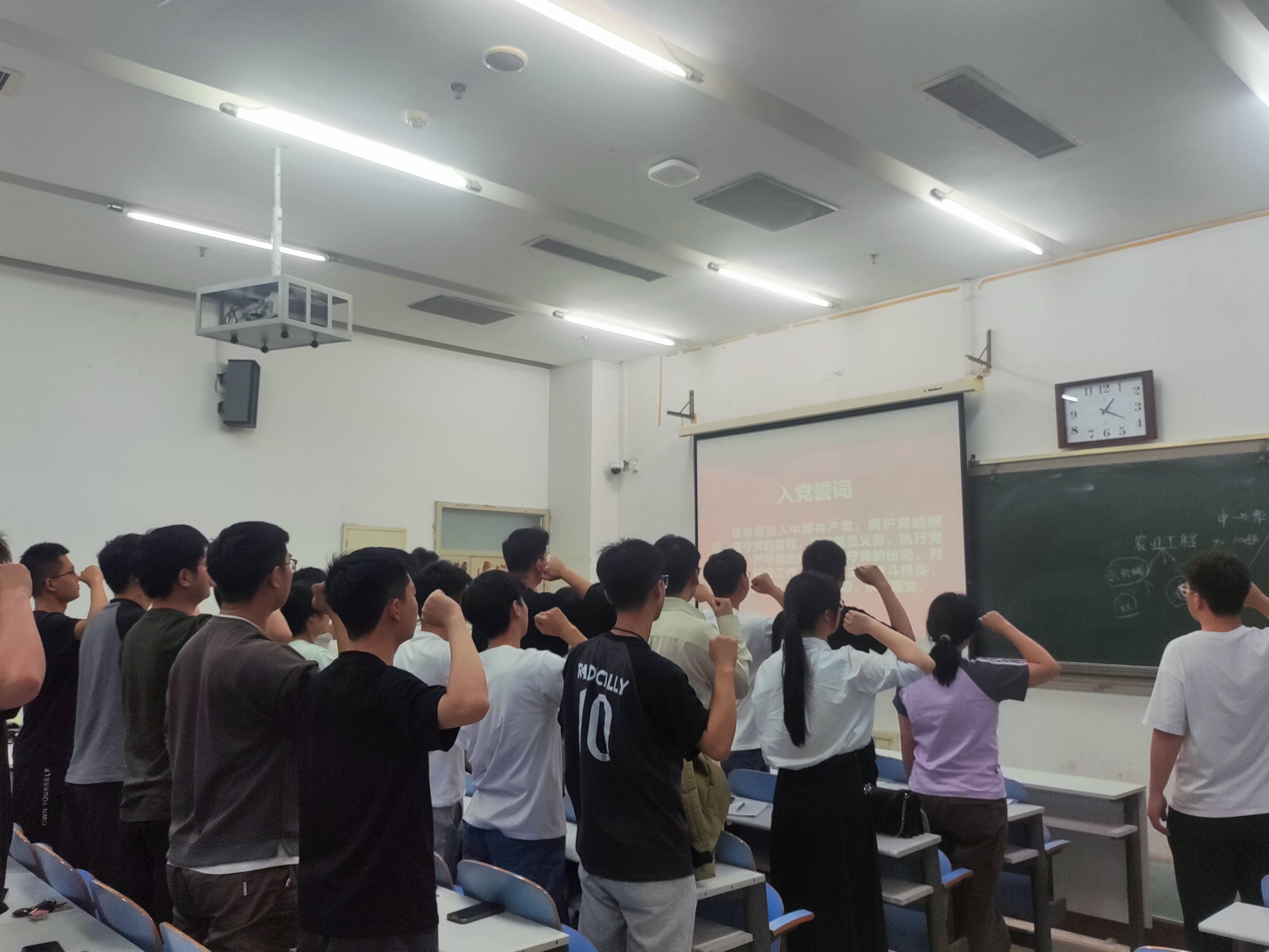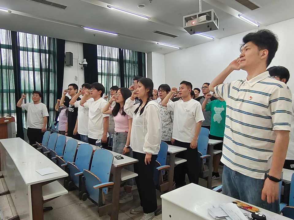 现场,各支部毕业生党员依次上台发言。分享内容贴合低年级研究生当前困惑,围绕毕业生考公、升学和找工作几个方面展开。全体毕业生党员结合实际情况,生动形象地剖析了自己的读研历程,为师弟师妹们分享了自身成功的先决条件和失败的经验教训,为助力在校生党员未来发展提供了宝贵的指导建议。最后,在各支部支委的带领下,全体党员重温入党誓词,进一步深化了此次支部活动的教育力度,也为毕业生党员在学校又留下了浓墨重彩的一笔。
