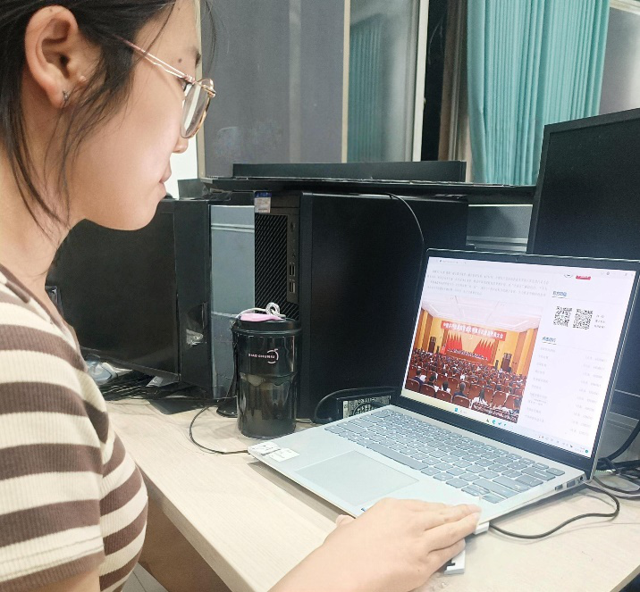 站在新的历史方位,我将始终牢记"请党放心,强国有我"的青春誓言,把党代会精神转化为勤学笃行的具体实践,把个人成长融入国家发展,以实际行动践行党员的初心与使命,在科技创新中勇攀高峰,在社会服务中践行初心,让青春在全面建设社会主义现代化国家的火热实践中绽放绚丽之花!