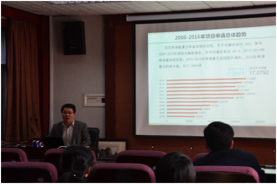 胡建军教授首先对2016年度全国国家自然科学基金申请和资助情况进行了详细总结。然后,结合农业工程学科,纵向对比分析了全国部分农林院校2016年度国家自然科学基金获批情况,并分析了近年来河南省各高等院校申请及获批国家自然科学基金情况。通过横向对比,分析了我校各学院近年来申请及获批国家自然科学基金资助情况。并结合2016年度国家自然科学基金政策变化情况,细致分析了申报注意事项。