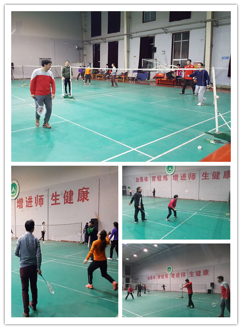 教师进行羽毛球队友谊赛。比赛在我校文化路校区体育馆进行。