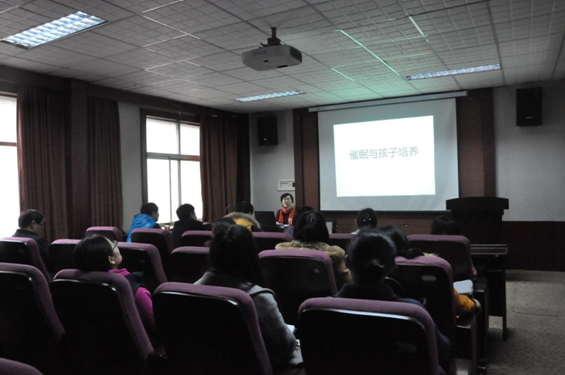女性教职工们解释了催眠的实质以及催眠性语言与孩子潜意识层面沟通的表现,并且分析了父母对孩子的正面催眠和负面催眠会给孩子的人生带来的不同的意义。