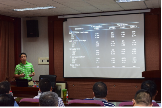 师生作了题为“Modeling of climate change impacts on hydrologic cycle and water quality in subsurface drained croplands in North America”的学术报告。报告会由学院副院长胡建东主持,学院部分教师和研究生参加了报告会。