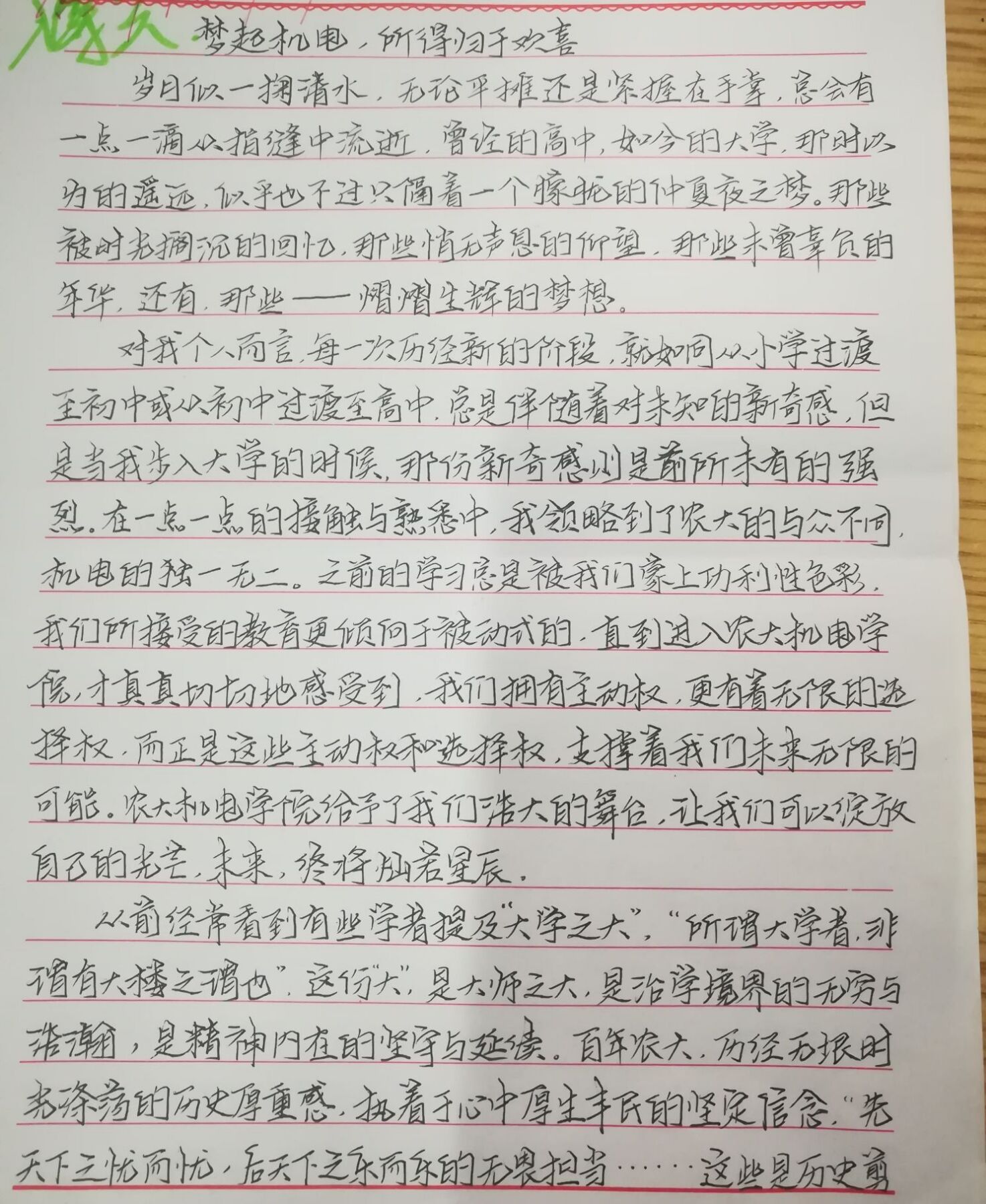 向18级全体新生新生发起以“缘系机电 初识机电 梦起机电”为主题的征文比赛。