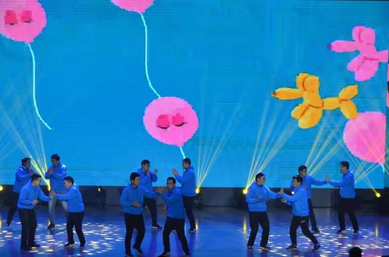 此次元旦晚会分为“青春激荡篇”、“奋勇争先篇”和“未来可期篇”三个篇章,从多角度、多种表演形式展开,为广大师生展现一场精彩纷呈的视听盛宴。晚会以热血阳刚的舞蹈《机电空间》拉开帷幕,张扬自信、激情澎湃的演员身上,映衬着机电学院学生的昂扬向上的精神风貌。曲建华、黄黎老师的《向上的光》,歌颂追梦少年的努力和执著;诗朗诵《机电荣光》,生动讲述疫情严峻形势下,机电师生在教学、在志愿服务等方面以身作则,力所能及为疫情防控做出贡献;由巴基斯坦教师纳迪姆·塔希尔一家演唱的歌伴舞《恭喜恭喜》,带来了外国友人及助理班主任对我们新一年的美好期许与祝愿,紧接着学院领导班子、各系主任等主要领导老师戴着喜庆吉祥的大红围巾,为师生送上最诚挚的节日祝福,使整场晚会的气氛推向高潮。情景剧《最可爱的人》,讲述抗美援朝战争中的故事,使同学们不忘历史,激发爱国情怀;教师舞蹈《烟雨行舟》,婀娜多姿的身影中,将色情小说网