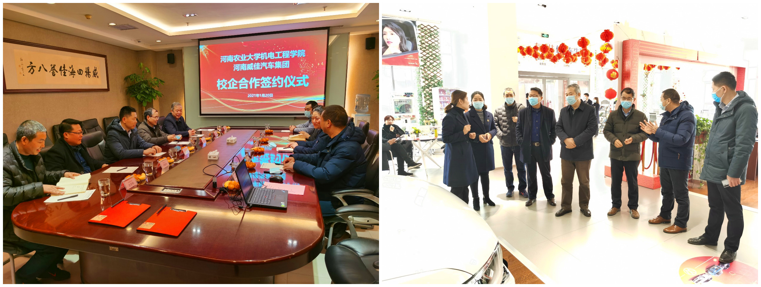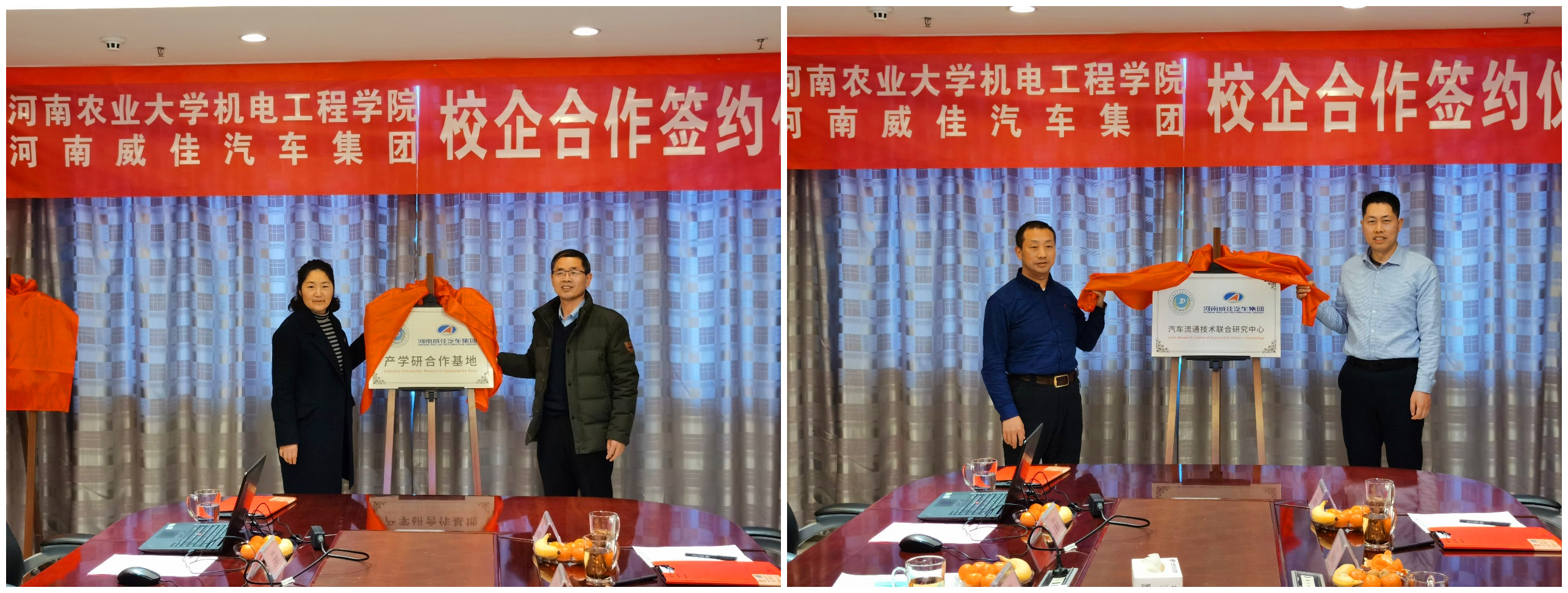 与河南威佳汽车集团合作建立的“产学研合作基地”、“汽车流通技术联合研究中心”签约及揭牌仪式在河南威佳汽车集团举行。院党委书记李世欣,副院长王振锋,李冠峰教授以及相关专业负责人,河南威佳汽车集团人力资源总监赵敏杰和售后服务总监孙立、以及相关部门负责人出席签约仪式。