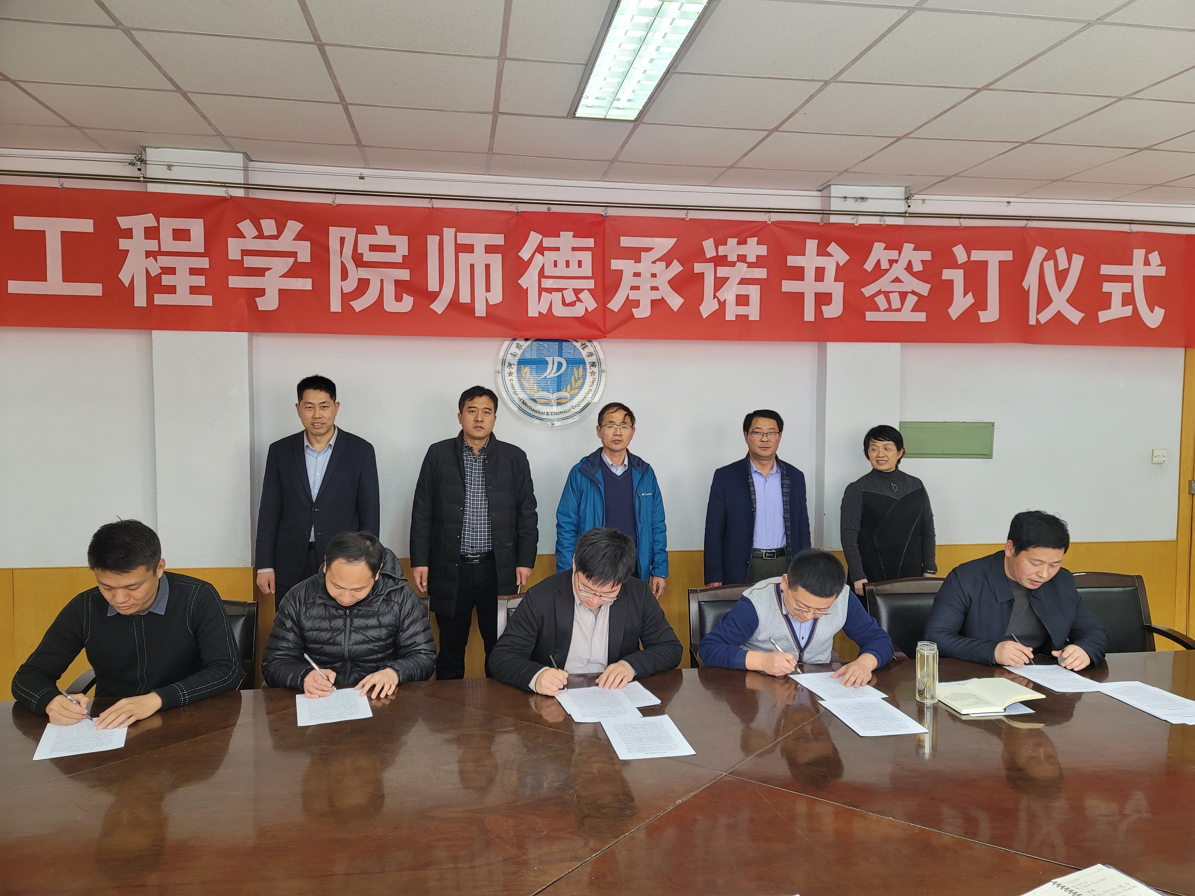 师德承诺书》。随后,学院领导班子成员在承诺书上签字,学院各单位主要负责人在学院领导注视下签字,全院教职工依次在师德承诺书上签字。