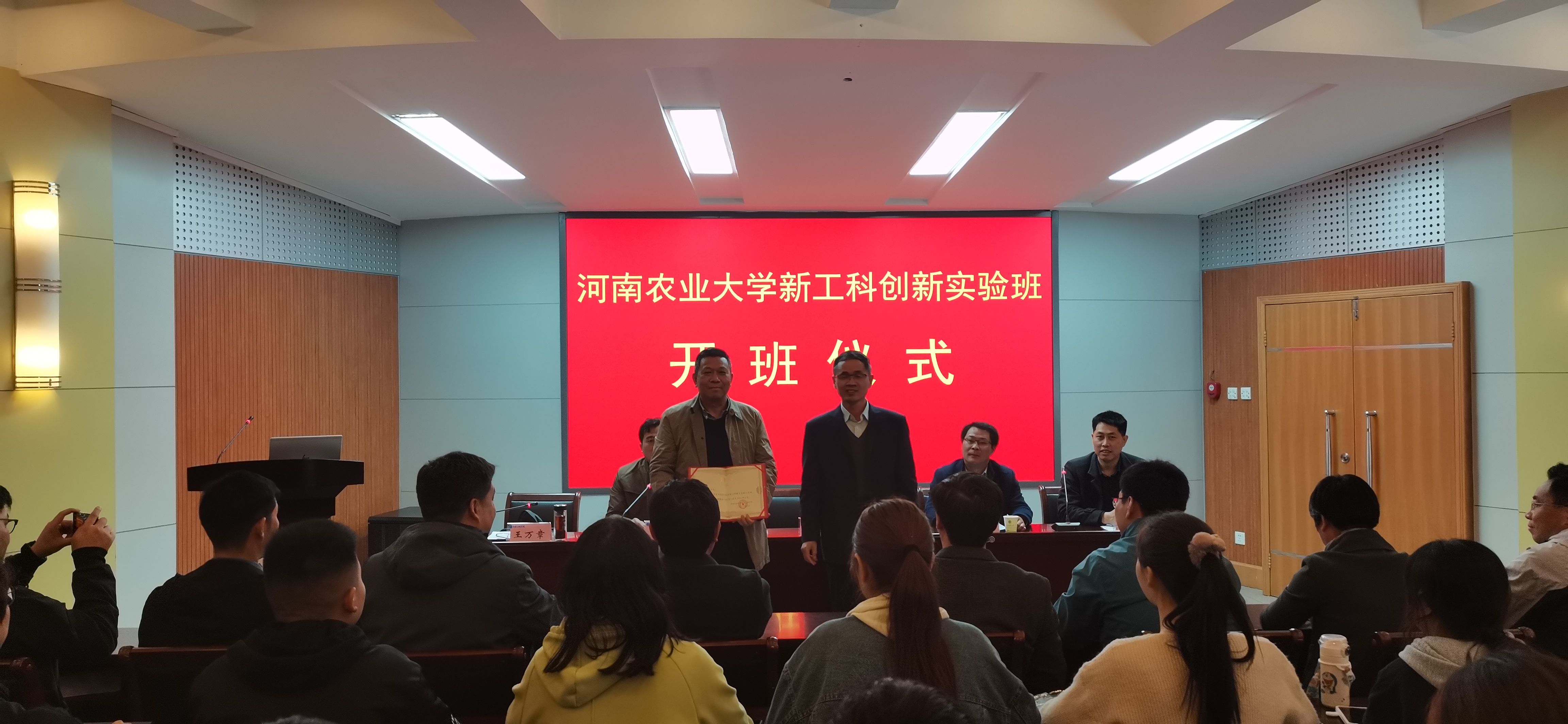 学生代表王如意发言。她表示,一要珍惜学习机会,掌握科研本领。二要发扬求知精神,勤于学习思考。三要牢记初心责任,树立远大目标。她认为,作为新工科创新实验班每一名学生,应珍惜来之不易的成长成才机会,严格要求自己,刻苦钻研,专注专业发展前沿,致力于农业农村现代化和乡村振兴事业,立志成为“知农爱农、强农兴农的“三农”人才,不辜负母校和老师们的悉心培养和殷切希望,以优秀的学习成果回报母校。