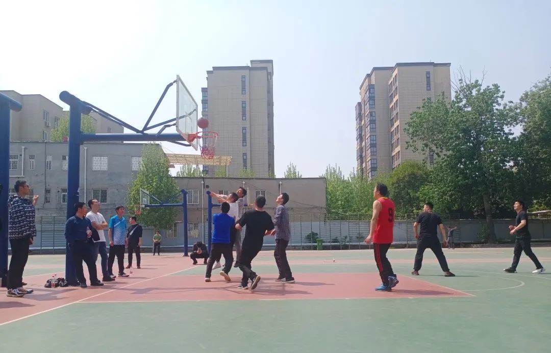 于文化路校区篮球场举行交通系与农机系教职工篮球友谊赛。