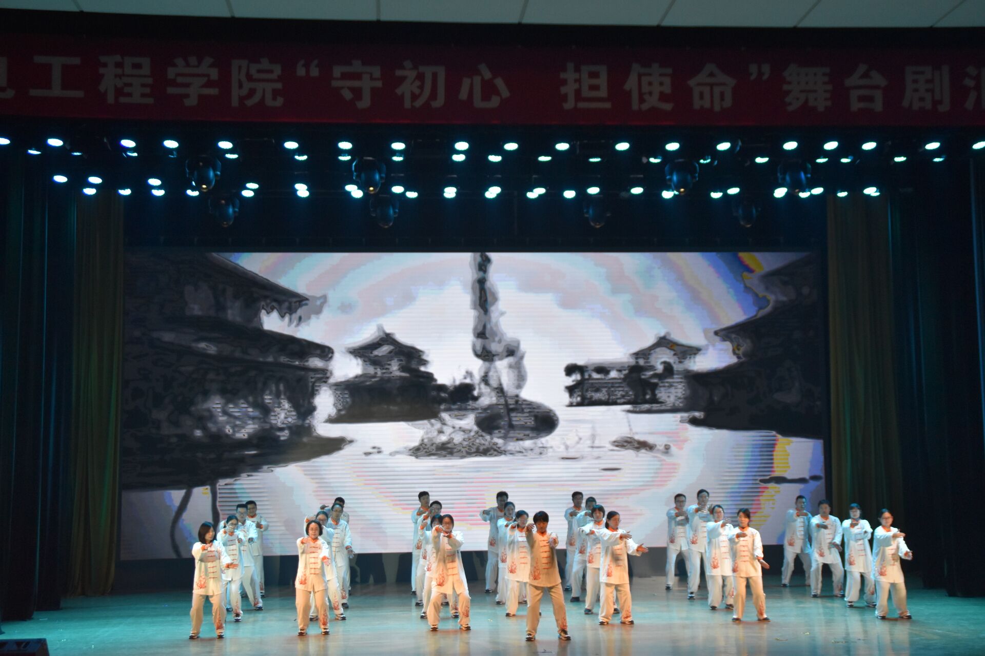 老师带来的太极拳表演《刚柔并济》,展现了中华传统文化的魅力,赢得在场观众的热烈掌声;舞台剧《涓涓之流,代代桃李》带领大家回顾了农大的抗战流亡办学史,筚路蓝缕,栉风沐雨,百年沧桑,铸就辉煌。演员们动情的演绎让大家又一次重温那段烽火岁月的峥嵘历史,铭记爱校荣校兴校的精神;李赫、徐捧丽老师的《歌曲联唱》使得台下掌声不断,将整场晚会推向高潮;朗诵《不朽》、话剧《阅兵前的那件小事》、歌舞秀《逐梦中华》一一上演,表达了机电学子对祖国母亲的深沉热爱与美好祝愿;张志萍、曲建华、黄黎、何勋等老师的一首《月亮代表我的心》,将老师对学生的无尽关怀和热切期盼娓娓道来;武术《我武惟扬》、舞蹈《易燃易炸裂》和19级新生助理带来的舞蹈串烧,受到全场观众的热烈反响,现场氛围一度高涨;歌曲《大中国》、《我和我的祖国》,引发台下观众深情共唱。晚会中,由色情小说网