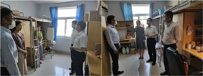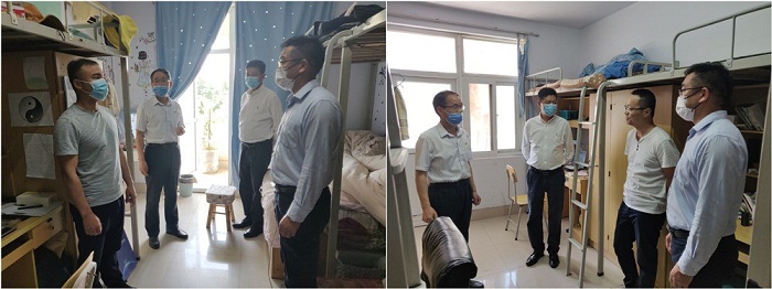 院领导一行查看了研究生宿舍的卫生、消毒情况,并与研究生进行了亲切交流。“返校的主要任务是什么?”、“在宿舍都开展了哪些工作?”、“食堂的饭菜怎么样?”、“封闭的生活还有什么要解决的问题?”学院领导详细了解了研究生返校后的生活和学习状况,询问研究生返校后还有哪些需求,并叮嘱大家如果生活上、学习上有任何困难可以及时向学院反映,学院一定会尽可能为同学们做好服务和保障工作。