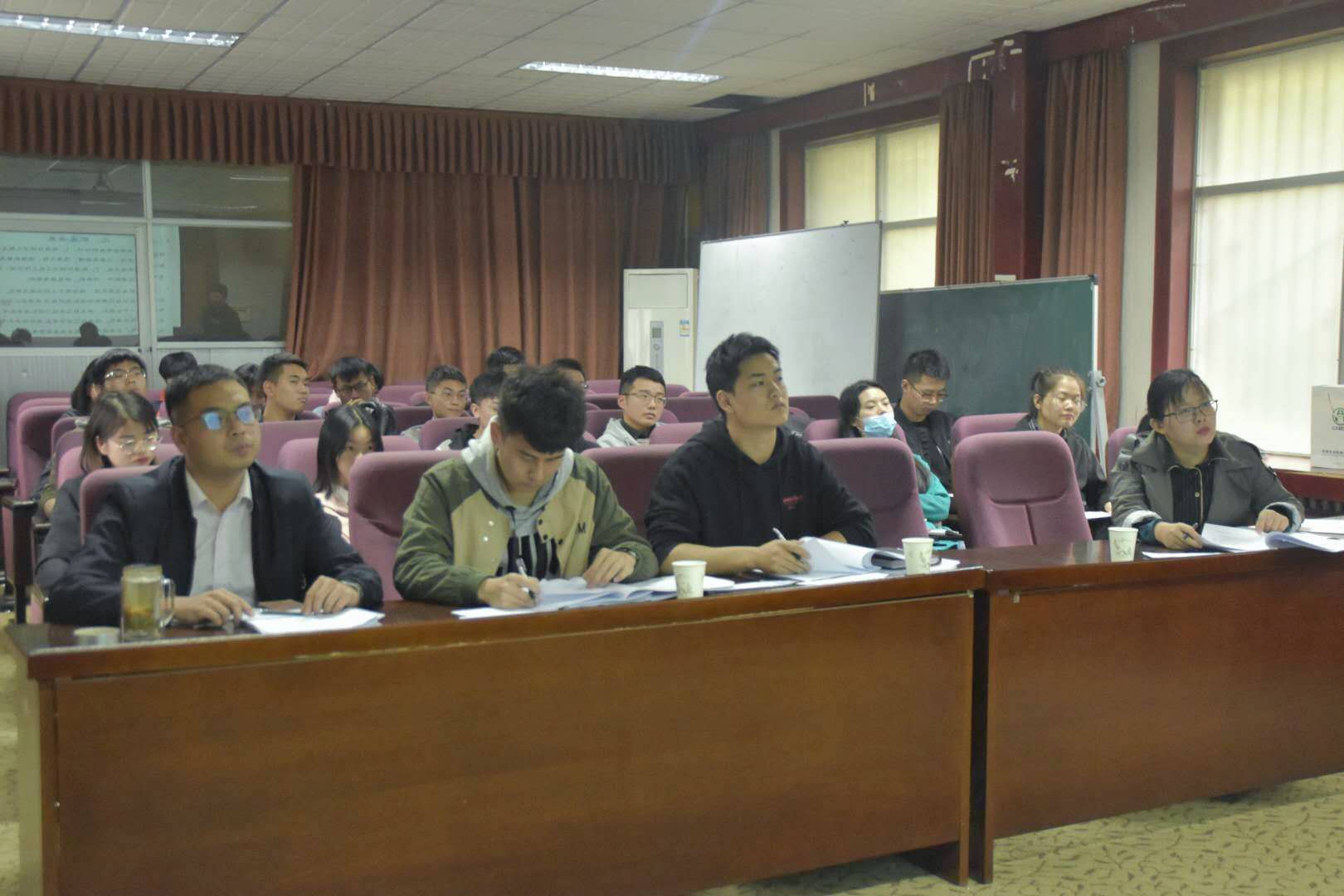 于学院报告厅举办“大学生职业生涯规划大赛”决赛。院团委副书记宋东皓、团委老师徐捧丽、院兼职辅导员张鹏飞、赵志强担任此次决赛评委,19级能源一班杨鑫担任主持。