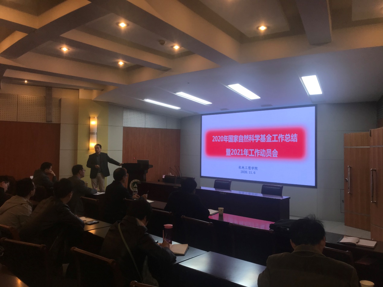 在校礼堂100人报告厅召开2020年国家自然科学基金项目工作总结暨2021年工作动员会。院党委书记李世欣、院长胡建军、院党委副书记赵宁、副院长胡建东、副院长王振锋出席会议,学院中青年教师参加了会议。