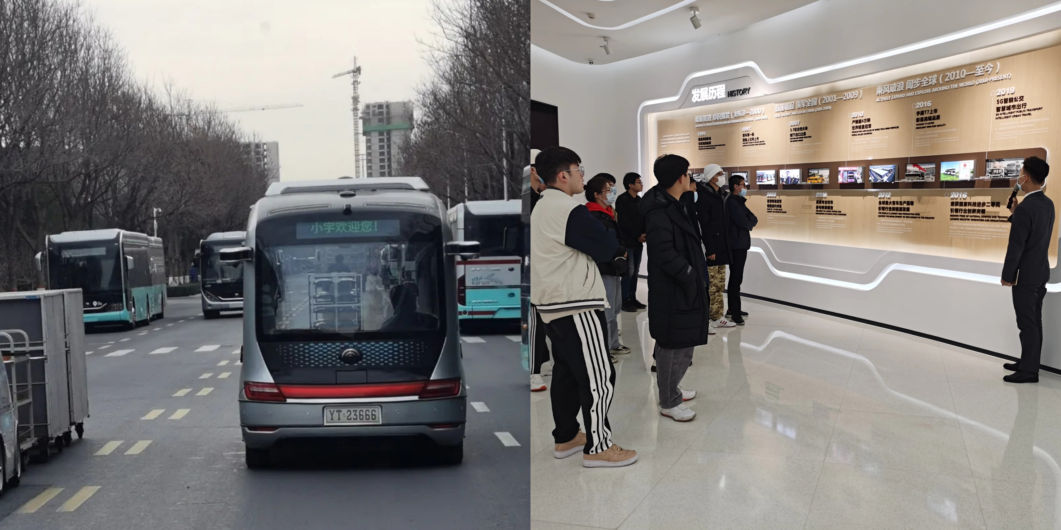 随后,企业人员热情带领学生乘坐无人驾驶巴士——小宇2.0,并为其介绍相关原理及应用,理论与实践相结合而带来的多种功能的呈现,为学生带来了一次全新的体验。此外,企业人员还带领学生参观了宇通客车博物馆,使学生对宇通公司有了全面而深刻的了解。