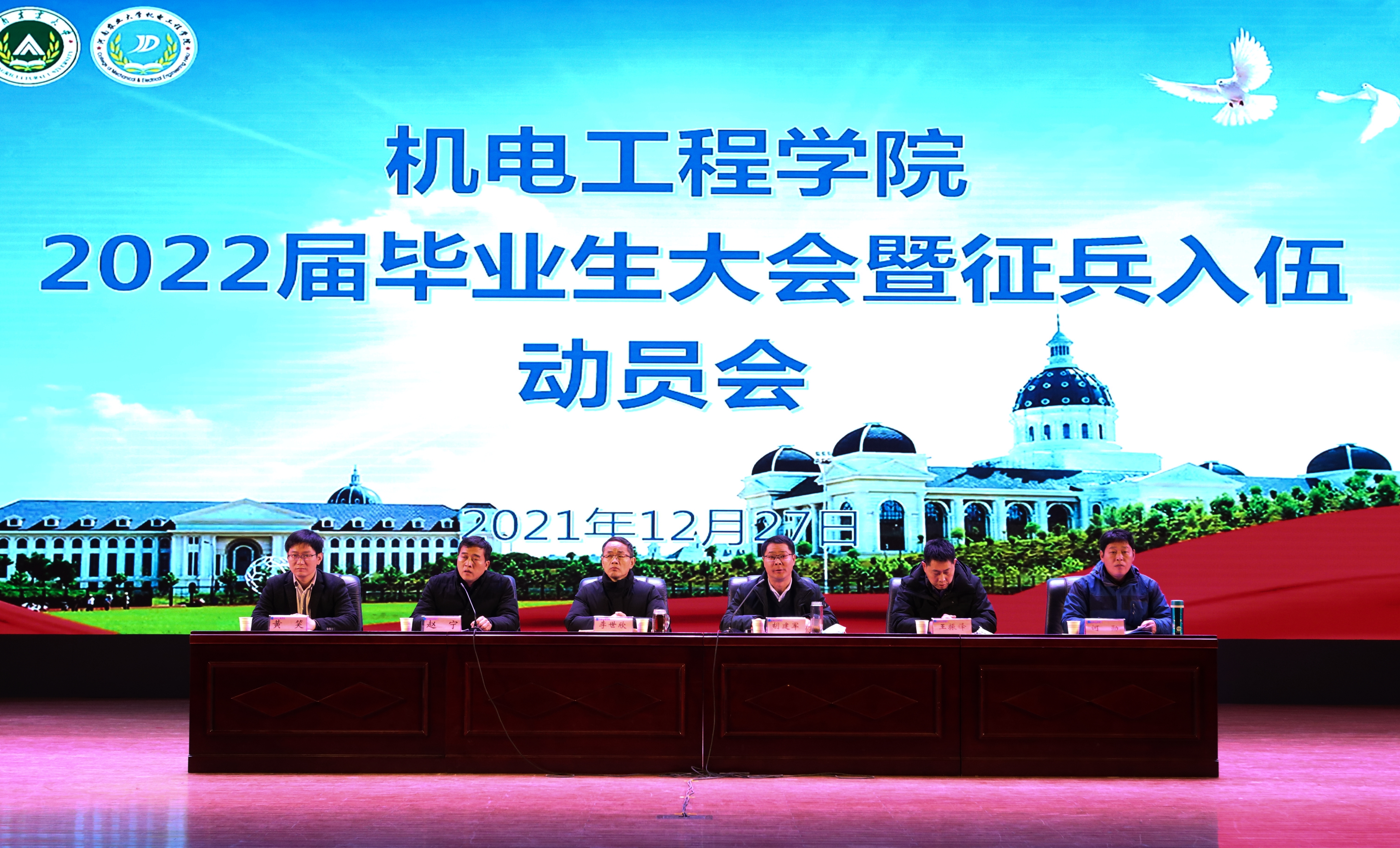 2022届毕业生大会暨征兵入伍动员会。院党委书记李世欣,院长胡建军,党委副书记赵宁,副院长王振锋,团委书记黄笑,教学秘书何勋,辅导员胡亭亭、王晓楠、李鹏飞和专业辅导员代表出席本次大会,2022届全体毕业生参加大会。本次大会由赵宁主持。