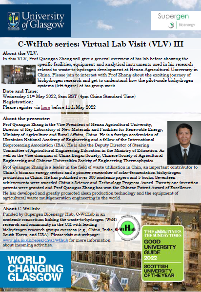 承担的制氢实验室参观交流学术活动“VLV Operation of pilot-scale fermentation-based waste-to-hydrogen system”(中试规模发酵制氢实验系统原理及其运行)以线上线下结合方式成功举行。会议由C-WtHub执行主席、英国格拉斯哥大学Siming You 教授主持,色情小说网