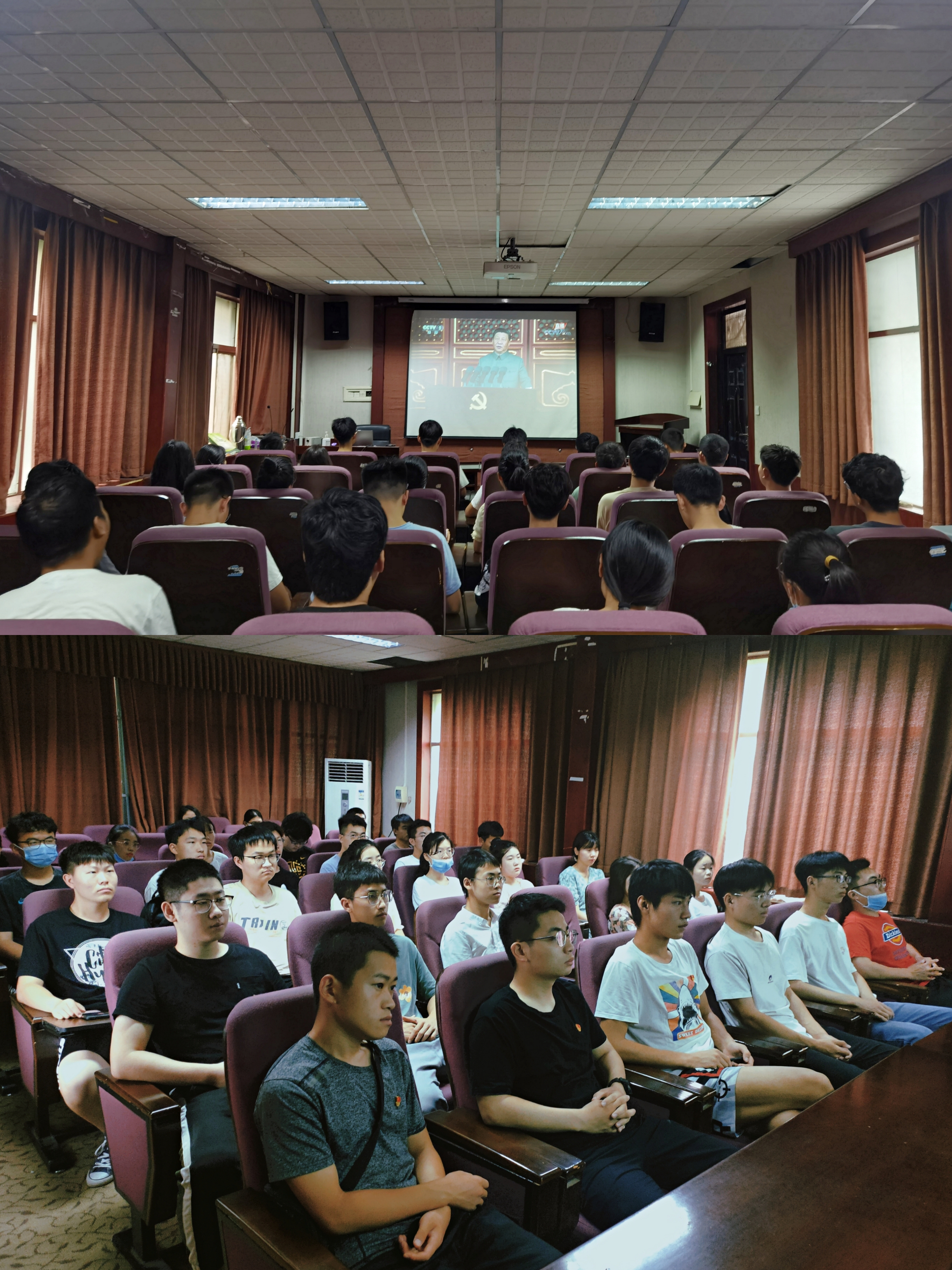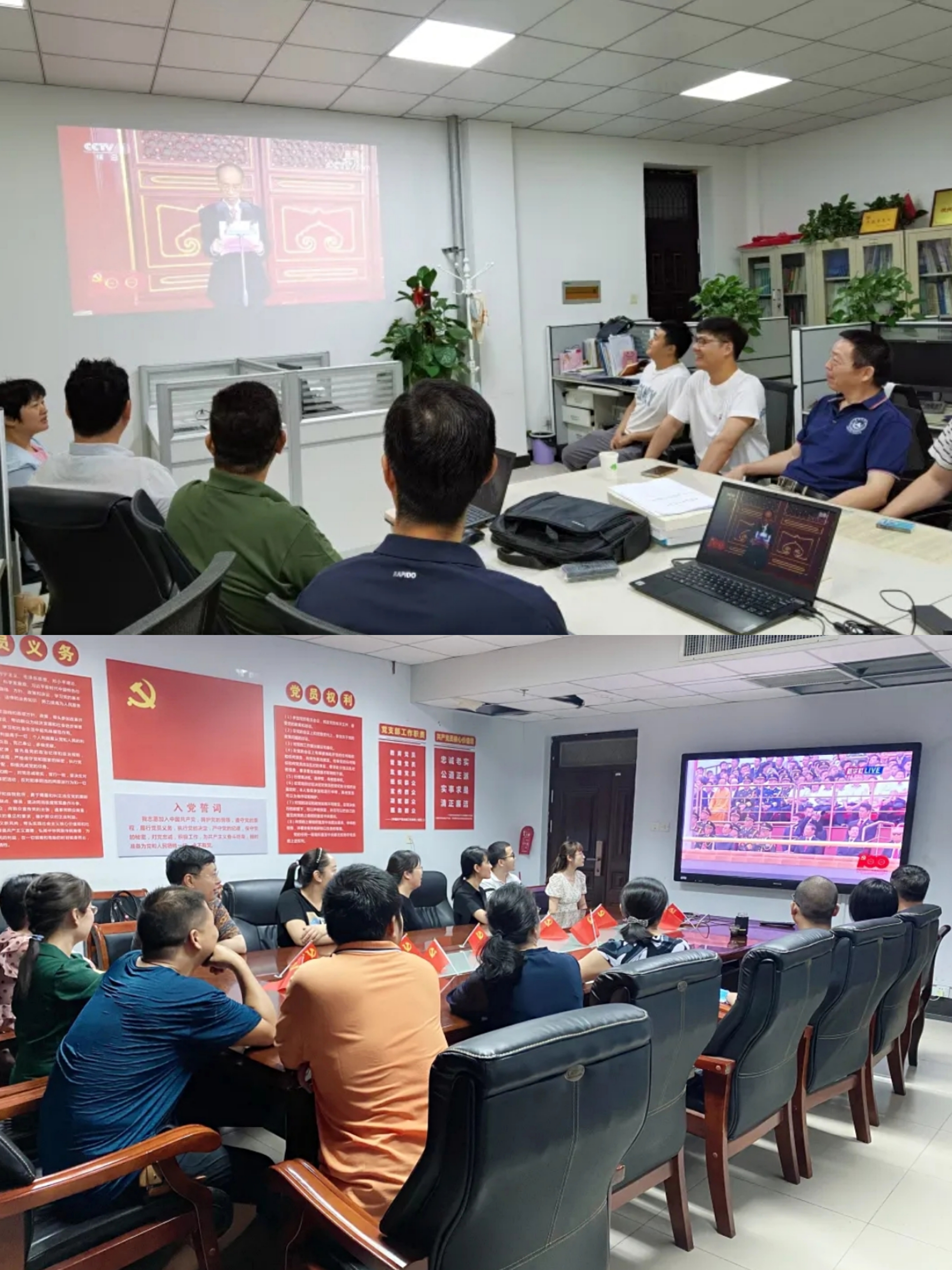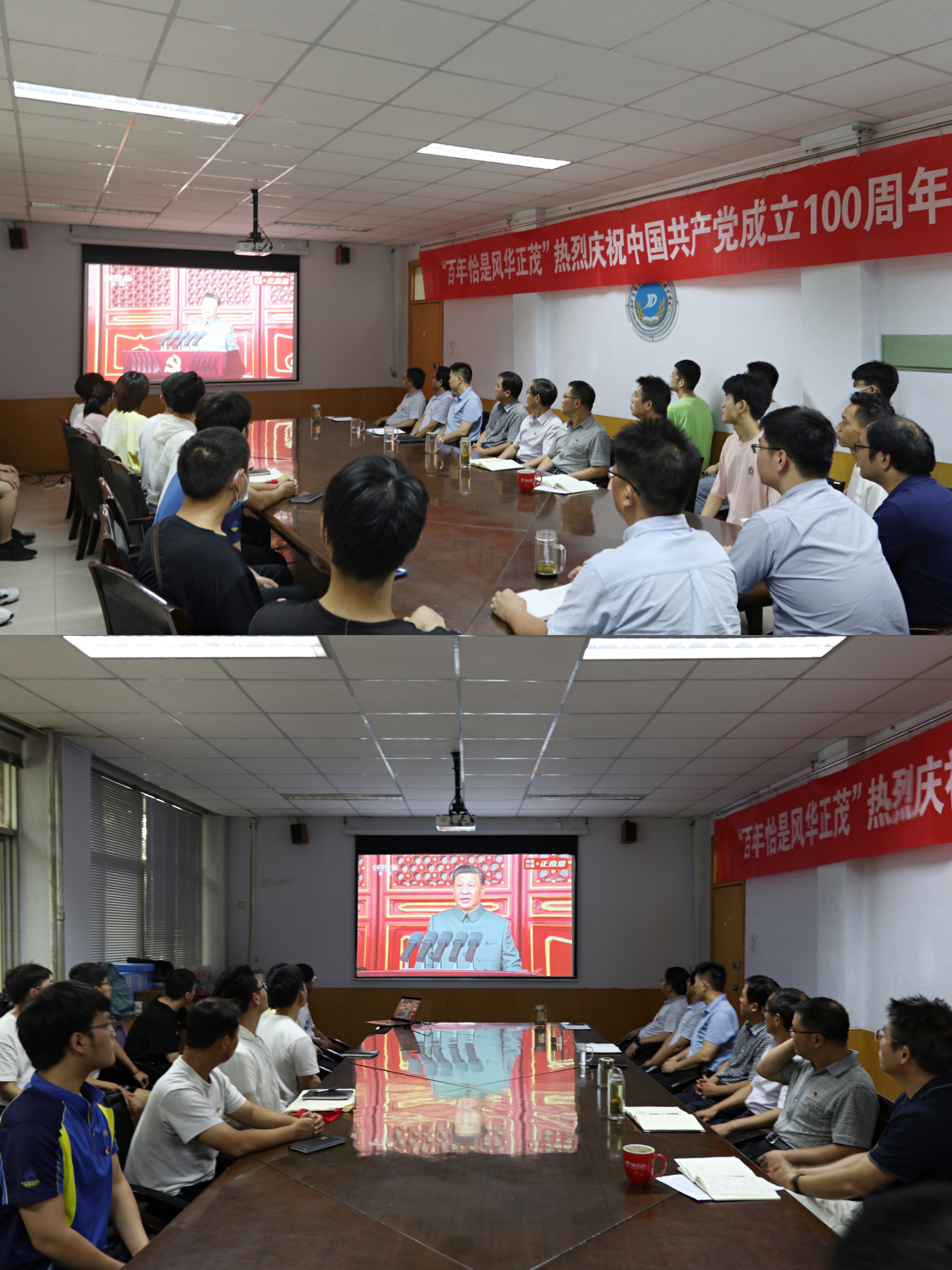 组织全体在校师生党员集中观看“庆祝中国共产党成立100周年大会”直播,部分师生党员于学院二楼会议室、报告厅集中观看,各教工支部分别集中观看。