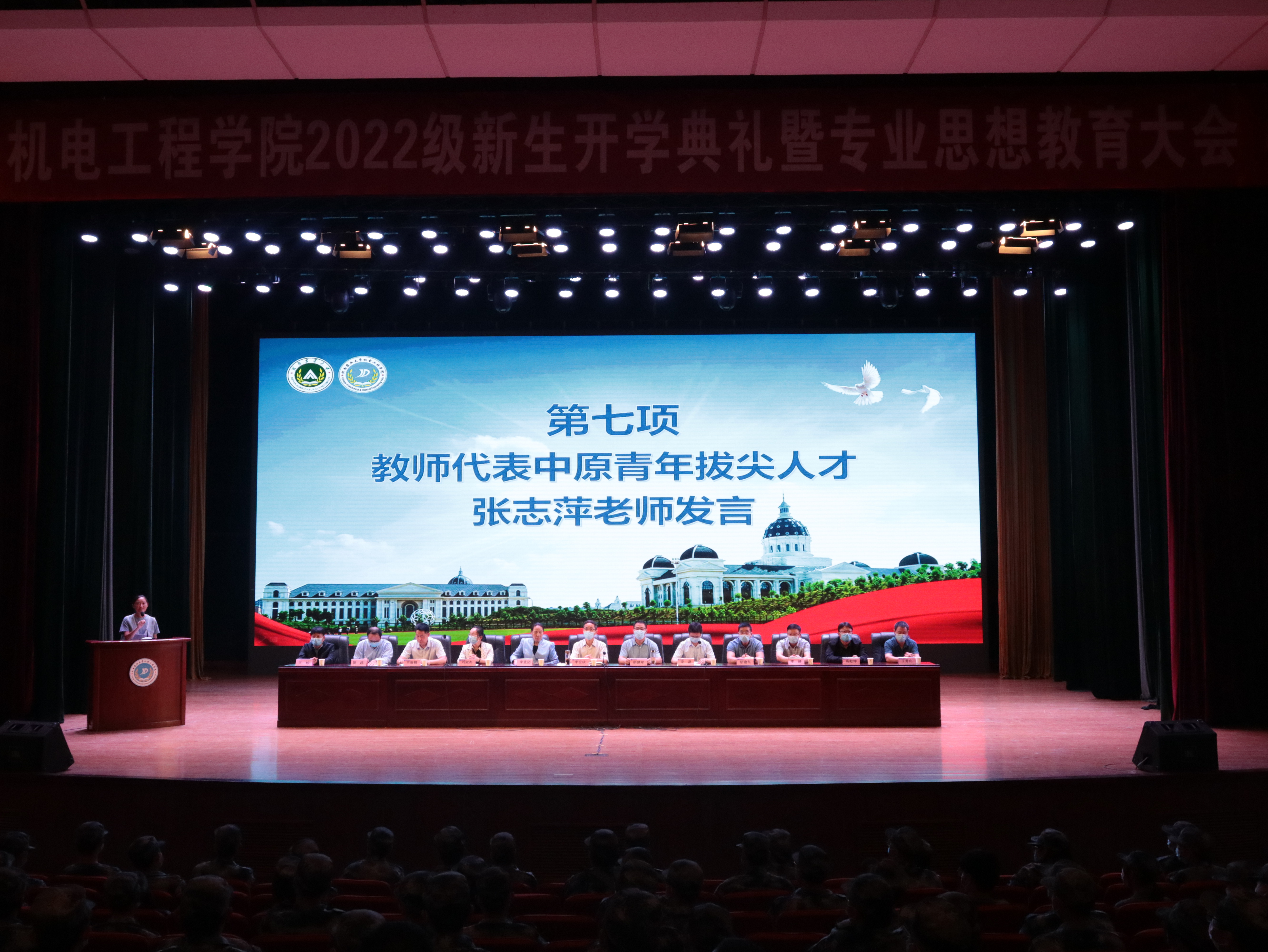 优秀教师代表张志萍上台发言,她以老师的角度鼓励全体新生在平凡的生活中寻找人生方向,积累经验、把握机会、用心积淀、不负成长;用自律贯穿大学生活,用持之以恒朝着目标不断前进。