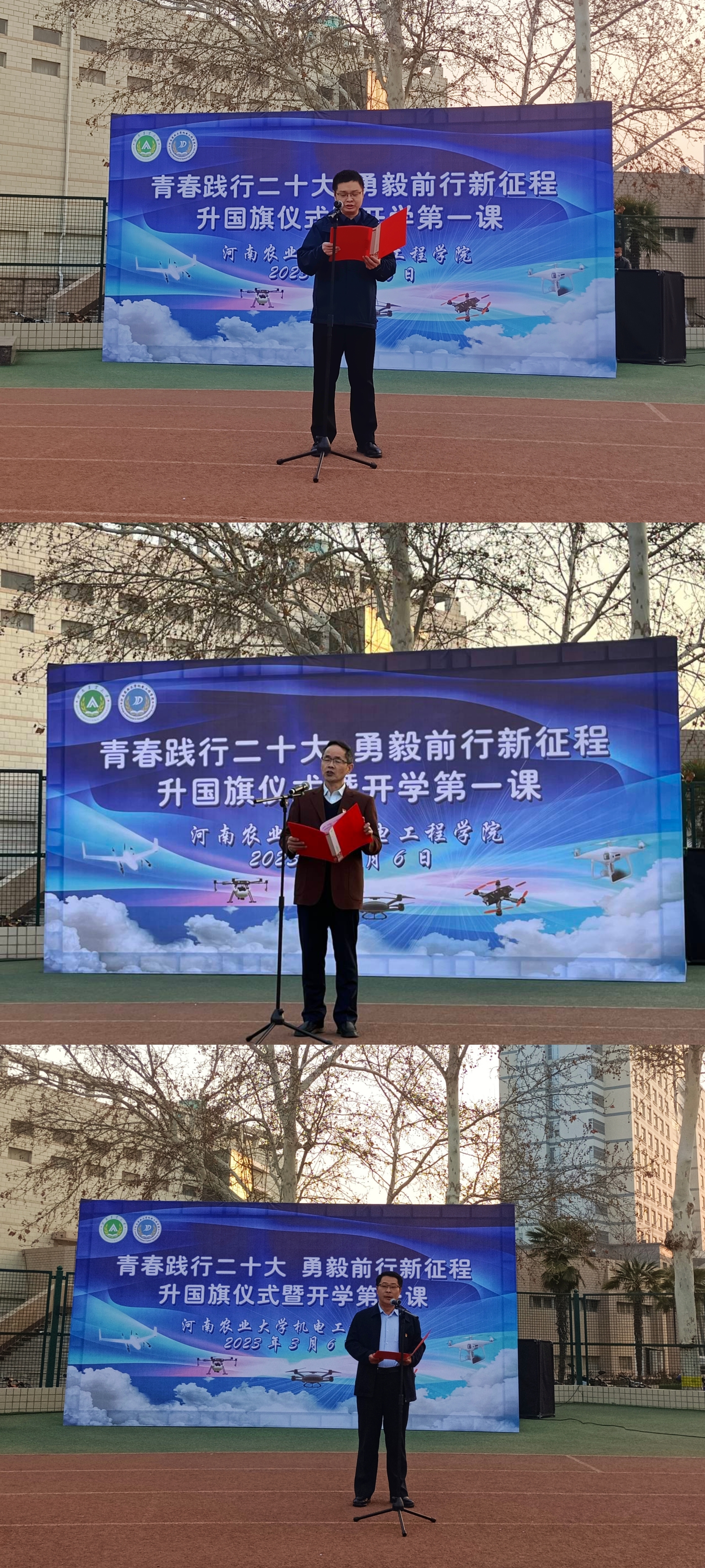 院长胡建军在国旗下发言致辞,他代表学院向全体师生致以新学期的问候,并对同学们提出三点期望:志存高远,做一个有志气的时代新人;崇德修身,做一个有正气的时代新人;锤炼本领,做一个有底气的时代新人。希望同学们在新学期勇毅前行、笃行不怠,在未来的征程里绽放出属于自己的光彩。