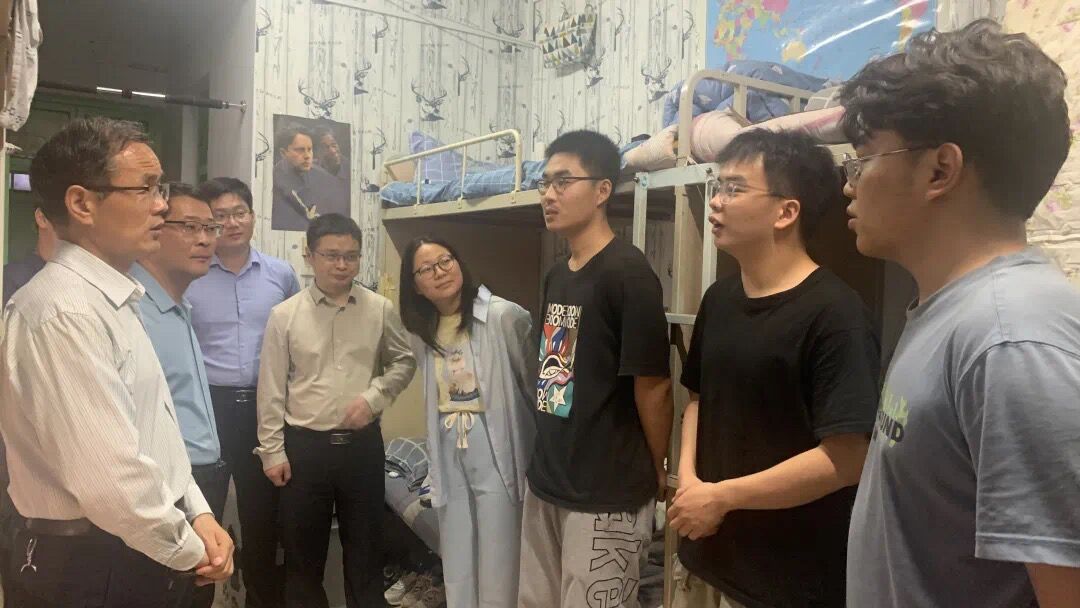 党委书记李世欣、院长胡建军、党委副书记宋晶、团委书记黄笑以及辅导员老师走访毕业生宿舍,了解毕业生的生活状况并为他们送上来自学院的真挚祝福。