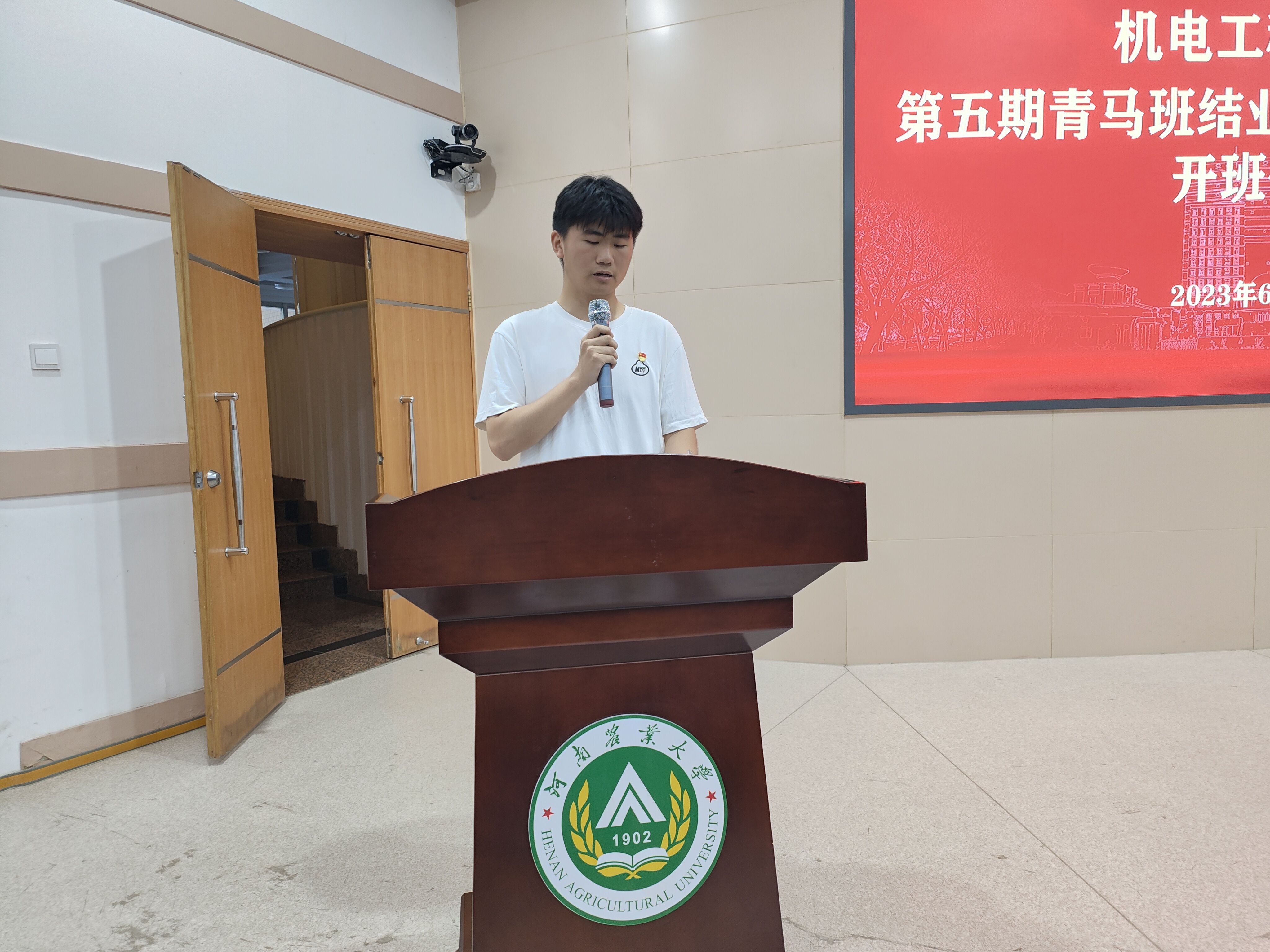 第六期青马班学员代表王克震发言。他代表青马班成员做出四点承诺:树立远大理想,坚定理想信念,提高自己的理论水平和政治修养;艰苦学习,沉淀良好品德,把握更有深度与广度的人生;始终艰苦奋斗,坚持脚踏实地,尽个人所学成长为国家需要的人才;不断开拓进取,勇往直前,提升自己的学习与工作能力。他表示,我们新时代青年肩负着时代的重任,我们要努力奋斗拼搏、不断向前,为全面建设社会主义现代化国家奉献青春力量。