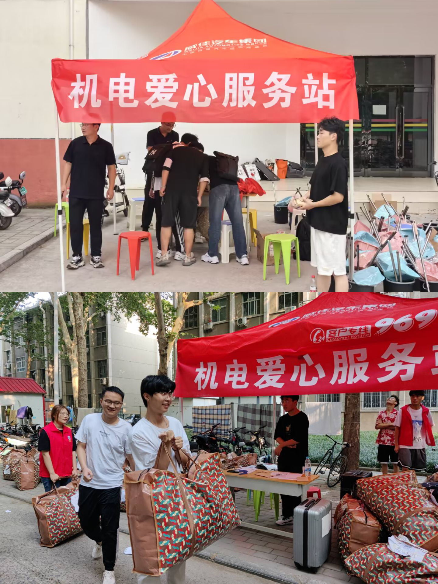 9月9日天色微晓,学院就开始部署执行搬迁工作,工作人员干劲十足、团结协作,在涉及搬迁的二区学生公寓、桃李园学生公寓、校本部4号楼、校本部5号楼、校本部24号楼、校本部27号楼等6个宿舍区前分别设立爱心服务站,为同学们照看运送物资、收发钥匙、提供矿泉水等。