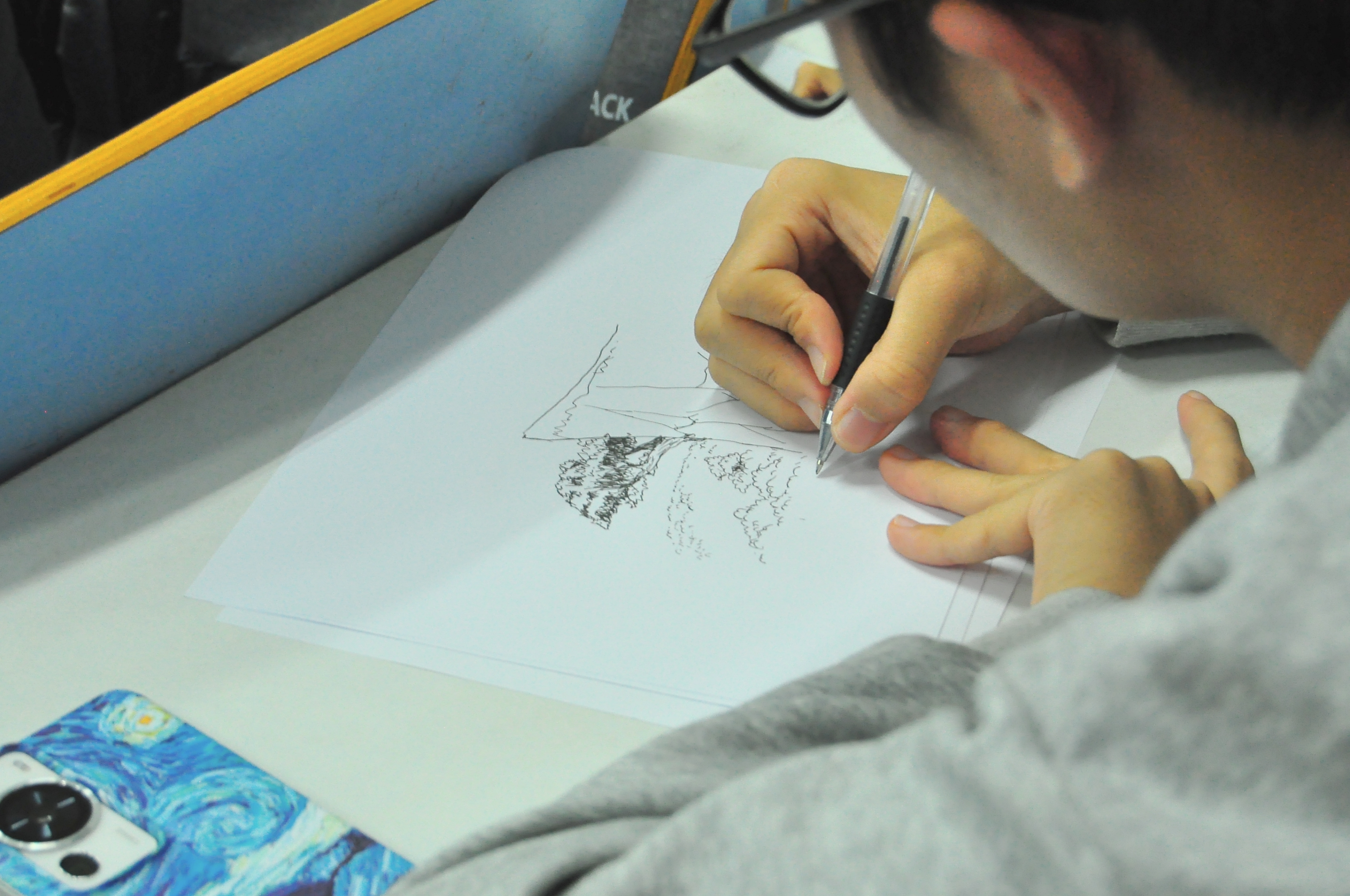 活动初始,刘淑杰简单介绍了此次活动的流程,并为大家发放画纸。随后,她通过一段柔和的音乐和循循善诱的话语引导学生放松身心,剖析自我,走进内心深处,在音乐中寻找属于自己的心灵之树。随着音乐的停止,同学们逐渐拿起手中的画笔,将自己心灵深处的那棵大树画在纸上。在绘画的过程中,大家聚精会神,通过画笔将想象中的画面渐渐呈现出来,表达内心的创造力的同时,也达到了探索自我、释放压力、激发潜力的效果。最后,在现场工作人员的组织下各班同学有序离场。