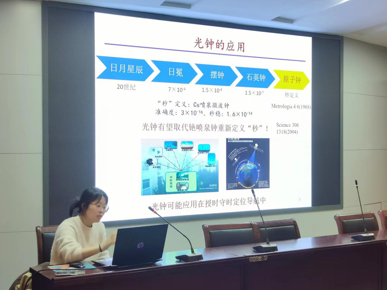 商俊娟 以“争分夺秒 再创佳绩”为题为与会研究生开展学术讲座。首先,商俊娟先介绍了自己的教育经历。接下来,商俊娟从研究背景、研究内容和研究经验三个方面讲述了光钟应用的相关问题。然后商俊娟分享了研究经验:一、多阅读文献,多跑实验室;二、勤奋;三、要主动发现其问题,主动去解决问题。会议最后,商俊娟和同学们交流了在硕博期间的经验。此次讲座商俊娟的内容丰富、讲述颇具风趣,使同学们对科研学习有了更加明确的目的,同时也使同学们受益匪浅,对以后的科研生活也有了具体的规划。(文/图:周梦雪 审核:李锦)