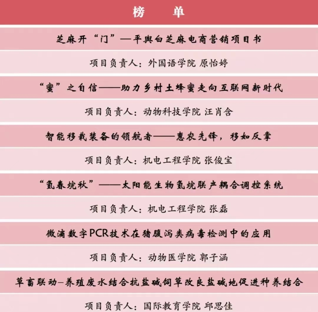 “青春创想家”第一届大学生农业产业创业项目“揭榜挂帅”专项赛,积极响应创新创造的时代主旋律,认真落实团十九大工作部署,教育引导大学生面向国家重大需求,踊跃投身科研攻关第一线,加速大学生科技创新成果向现实生产力转化,汇聚磅礴青春力量加快建设科技强国。