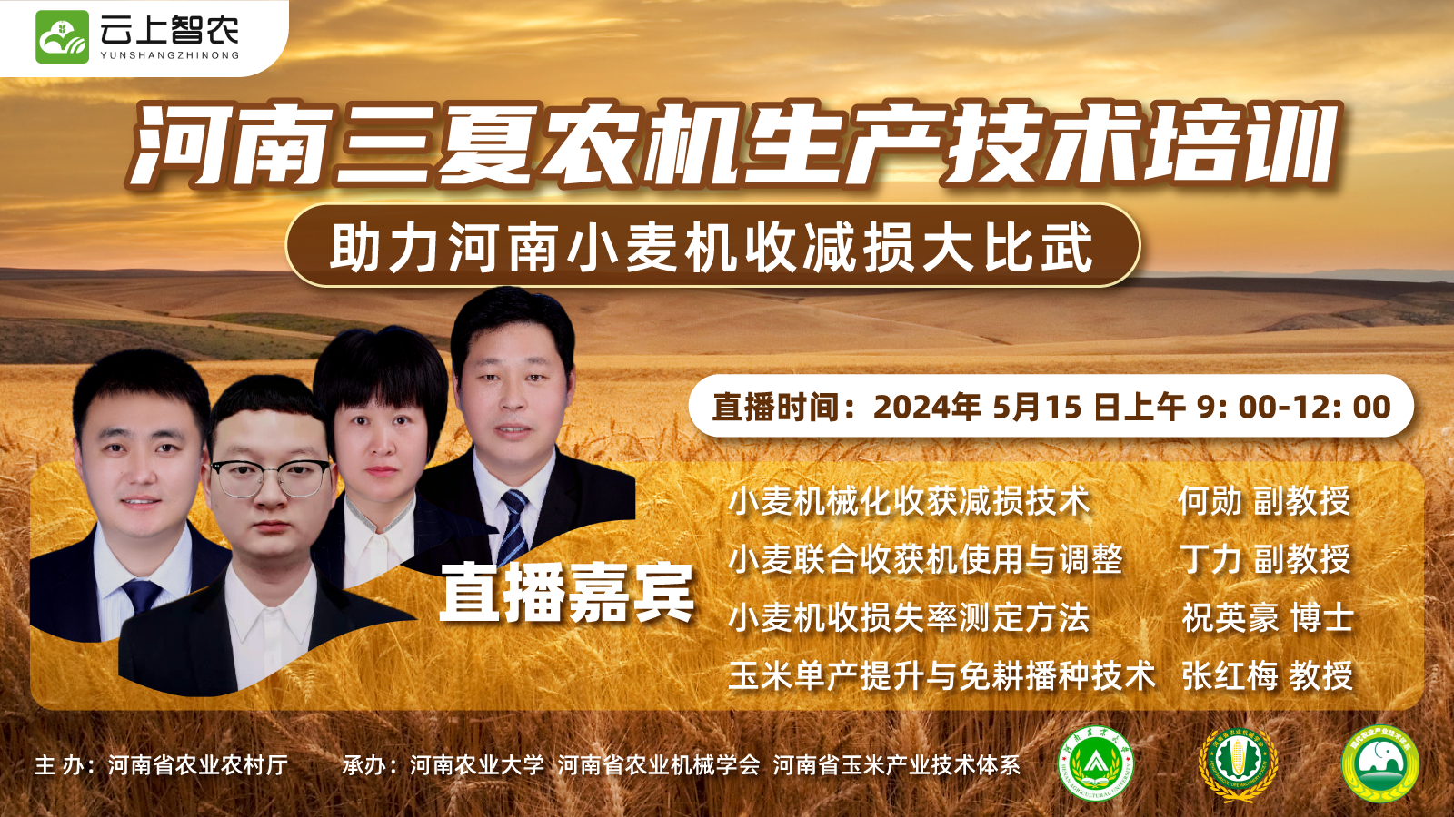 受河南省农业农村厅委托,举办了2024年河南省粮油机收减损技术培训,采用“云上智农”网络直播形式进行。各市、县农机化管理人员、农业科教管理人员、安全监理人员、农机农技推广人员和农机从业人员、种粮大户等超过8.6万人参与线上培训。