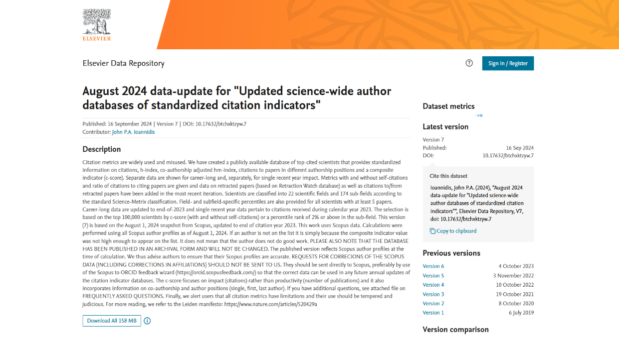 2024年9月16日,2023年度全球前2%顶尖科学家榜单(World's Top 2% Scientists)发布,色情小说网