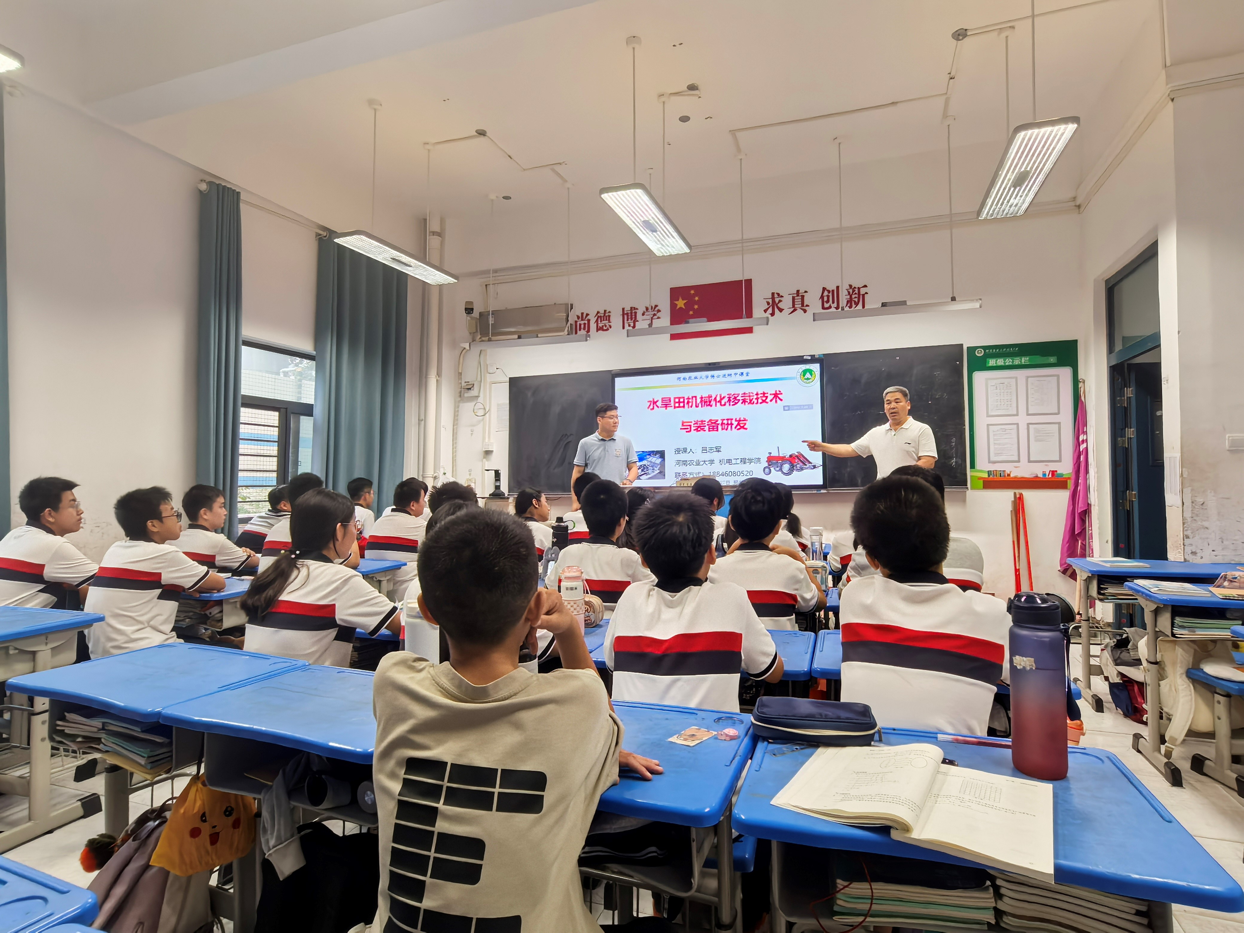 附属中学,开展了一场主题为“水旱田机械化移栽技术与装备研发”的科普讲座,讲座由附中副校长张洁云主持。