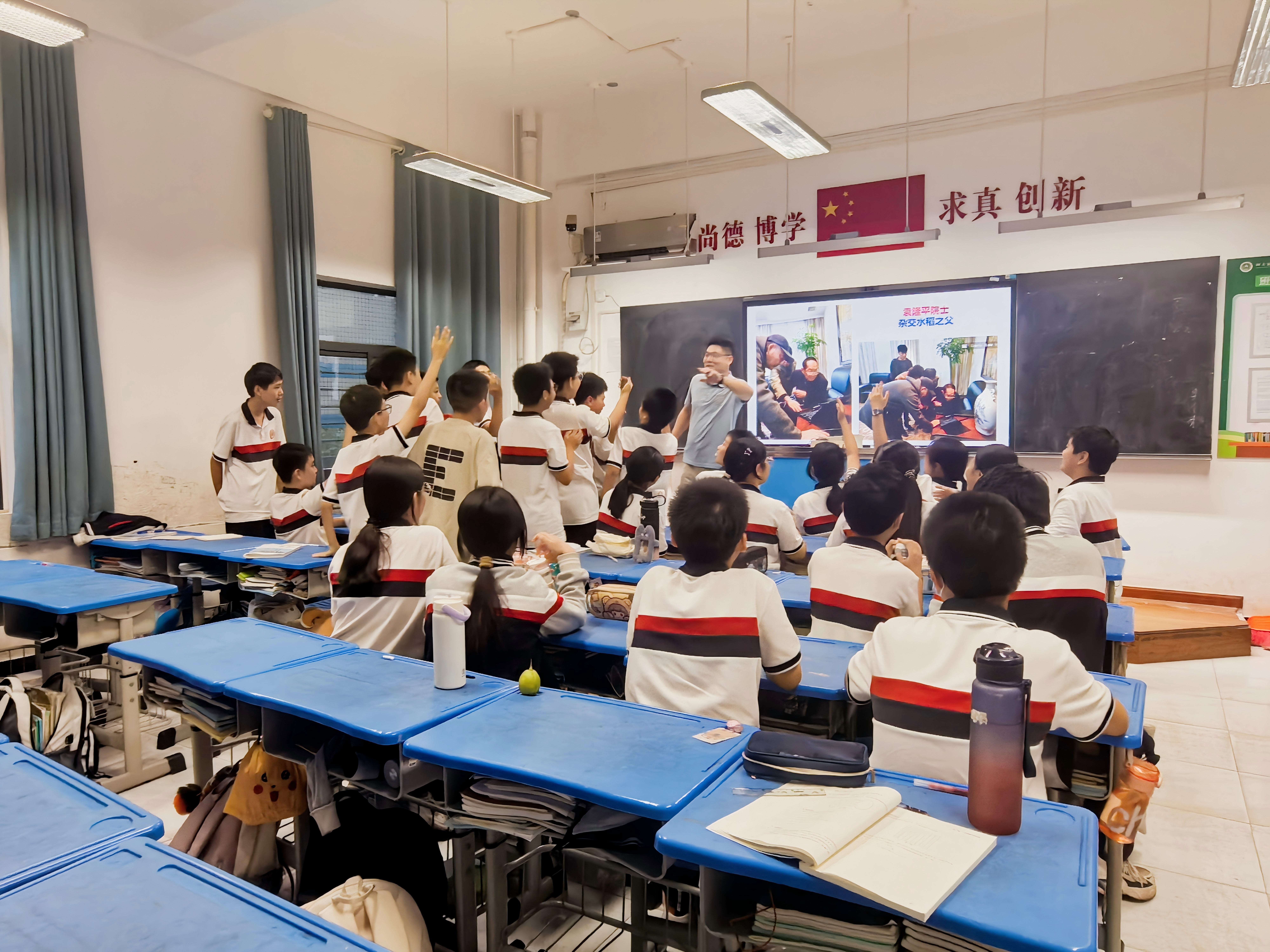 讲座接近尾声时,吕老师播放了向袁隆平院士汇报合作交流的视频。视频开始,同学们自发起立,向袁院士致以崇高的敬意,随后全神贯注地聆听院士的声音。这段视频不仅展现了袁院士的大家风范。此次科普教育活动不仅丰富了同学们的校园文化生活,更在潜移默化中增加了学生的科学兴趣,培养了他们的科学思维与创新能力。