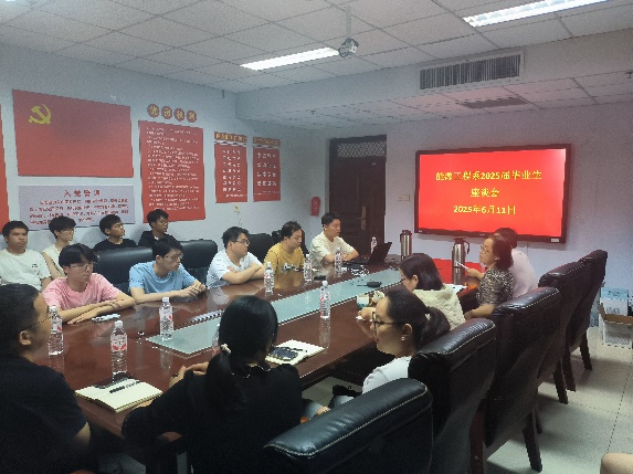 能源工程系举行了2025届毕业生座谈会。座谈会由能源工程系副主任、系党支部委员王伟副教授主持,系支部组织委员赵淑蘅副教授,教师代表徐桂转教授、岳建芝教授、蒋丹萍教授、张寰正高级实验师及李亚猛教授,农业建筑环境与能源工程、能源与动力工程、新能源科学与工程专业本科毕业生及硕博毕业生代表共计20余人参加座谈会。