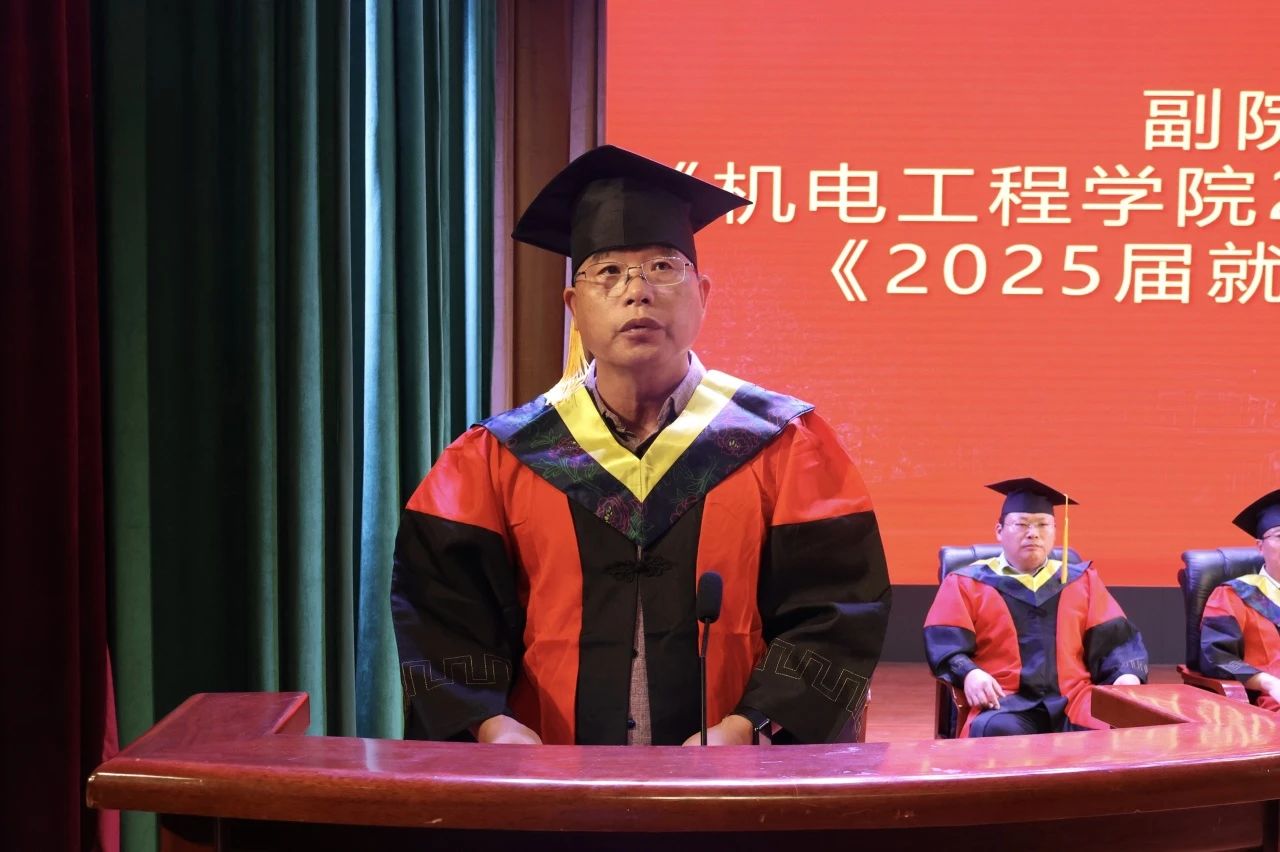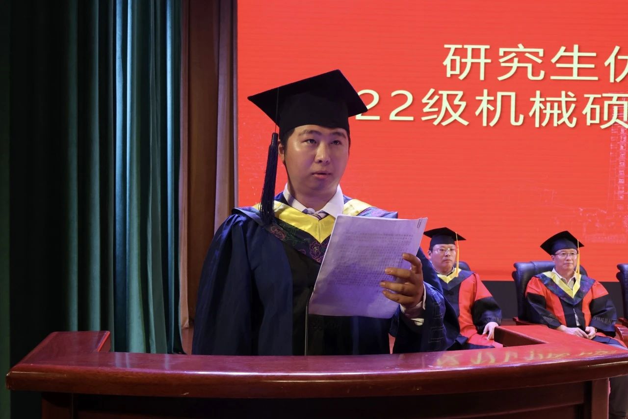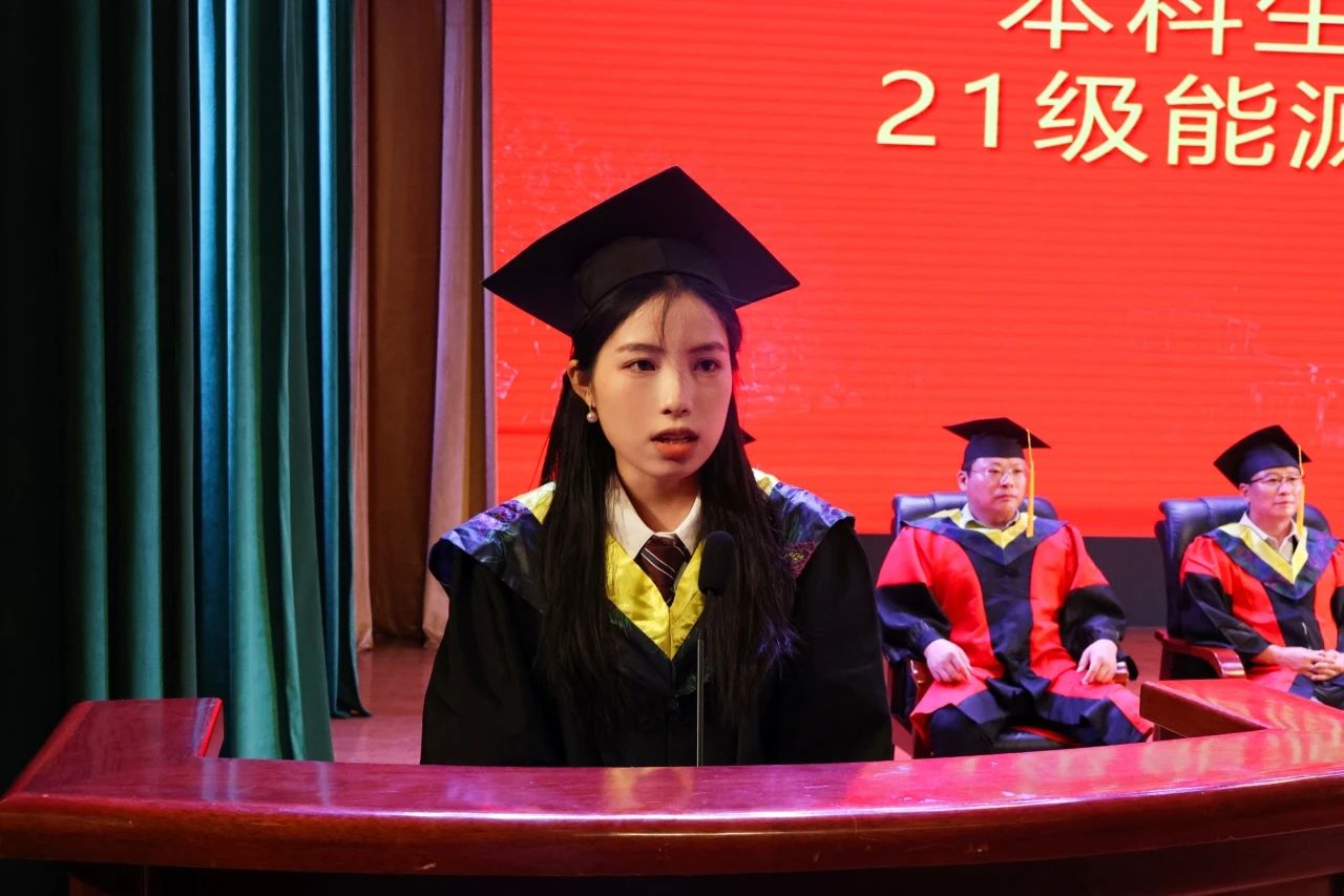 本科毕业生代表陈露以“成长、感恩、启航”为主题,回顾大学四年中建党百年、校庆120周年等重要时刻,感恩学院的培养以及老师的教导、同学的陪伴,号召毕业生们带着“农大机电人”的标识,在各自领域为强国建设、民族复兴贡献力量。