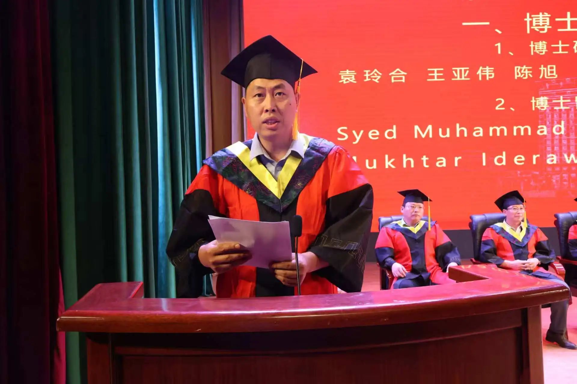 研究生毕业生代表赵竞凯分享七年农大时光,从科研探索的艰辛到收获成长,感谢导师引领与学院培育,呼吁同学们以青春赴时代之约,在复兴征程中书写华章。