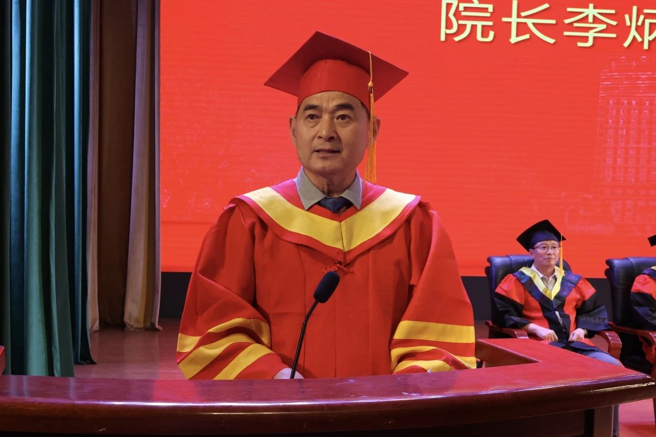 院长李炳军老师总结讲话。他首先祝贺毕业生圆满完成学业,感谢父母师长的培育。接着回顾了同学们在校期间的成长以及学院近五年在科研项目、论文发表、专利授权等方面的成果,还有在竞赛中取得的优异成绩。最后,李院长对毕业生提出三点期望:永葆求知之志,以勇锐越关,莫忘初心之责,祝愿同学们前程似锦。