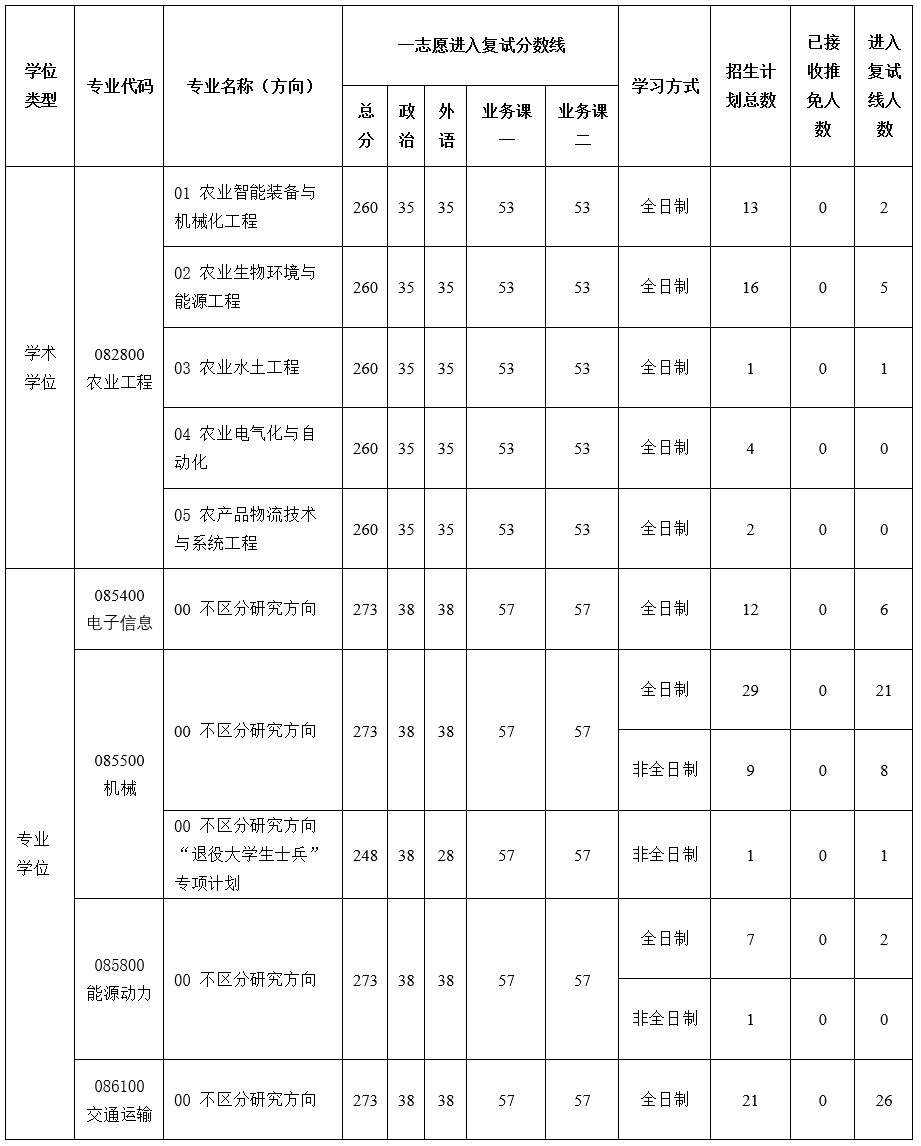 二、各专业硕士研究生统考招生计划及复试分数线