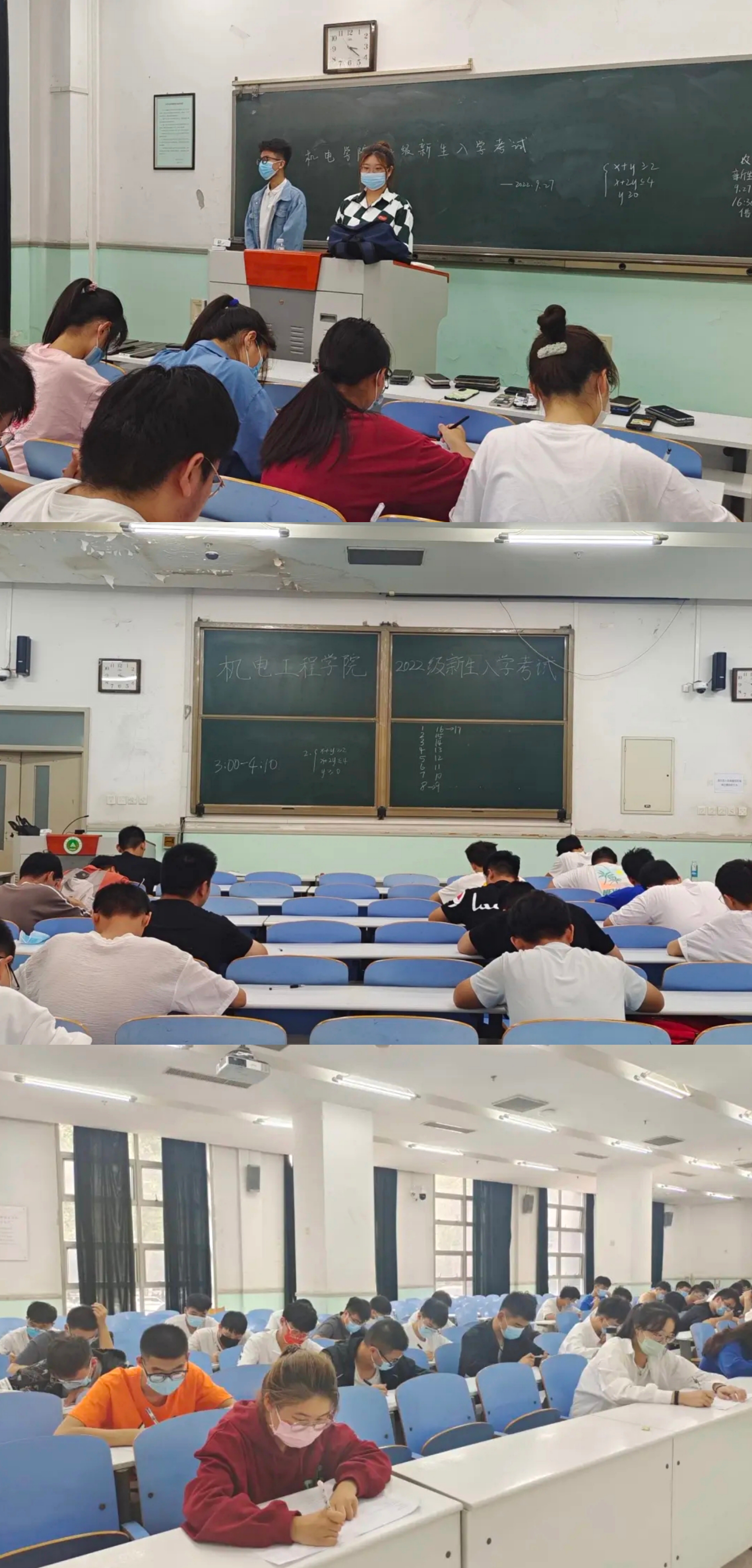 考试以班级为单位进行,各班助班监考。考试现场,秩序井然,气氛严肃。新生个个全神贯注,认真答题,毫不怠慢;监考人员公平公正,认真负责。