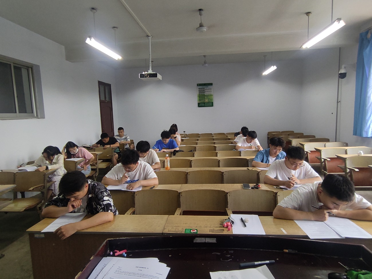 研究生辅导员李锦宣读考试有关规则,并提醒大家自觉遵守考试纪律,秉持诚信考试原则,考风良好。考试分为听力和客观题两部分,随着听力部分开始,同学们或是轻松应对,或是略作思索,或是微微蹙眉……听力部分结束后,同学们没有片刻松懈,迅速投入了笔试的进程。