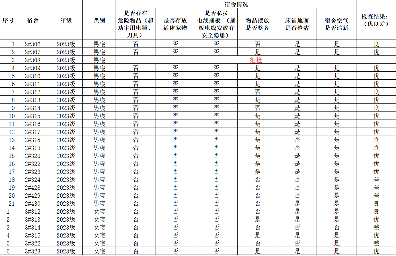 10月24日宿舍检查情况