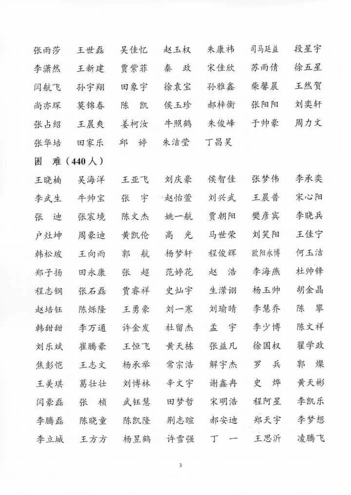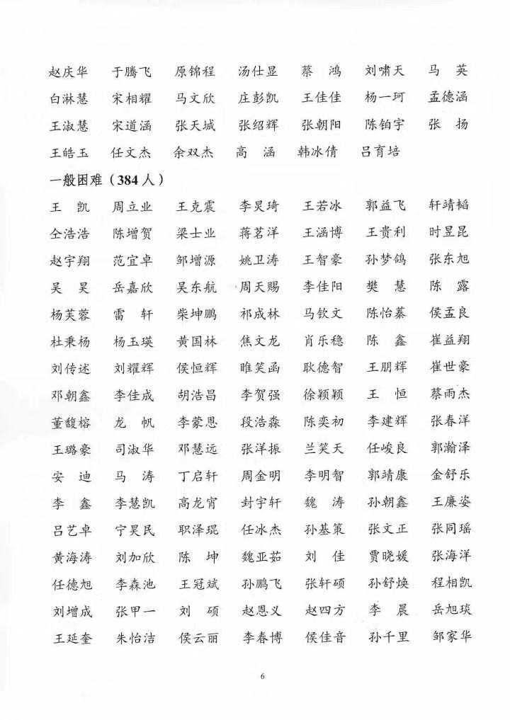 根据《教育部等六部门关于做好家庭经济困难学生认定工作的指导意见》《河南省家庭经济因难学生认定工作实施办法》和《色情小说网 家庭经济困难学生认定办法(修订)》精神,学院认真开展贫困认定工作,结合各学生班推荐报备情况,经学院学生工作领导小组和资助工作领导小组研究生审核,最终确定2024-2025 学年家庭经济困难学生认定名单,现公示如下: