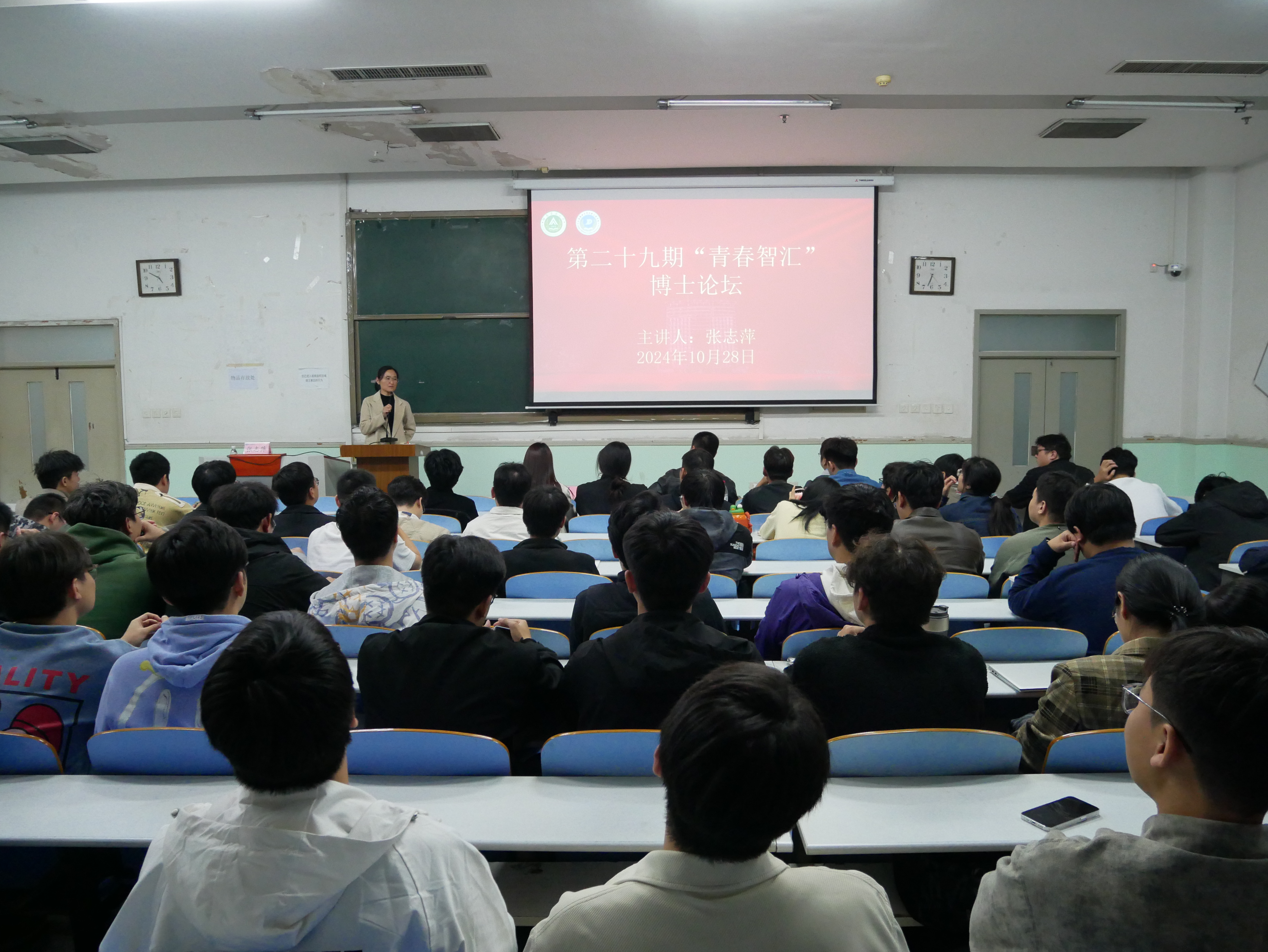 青年长江学者张志萍教授主讲,学院党委副书记宋晶、研究生辅导员李锦和2024级全体研究生参加讲坛,讲坛由李锦主持。