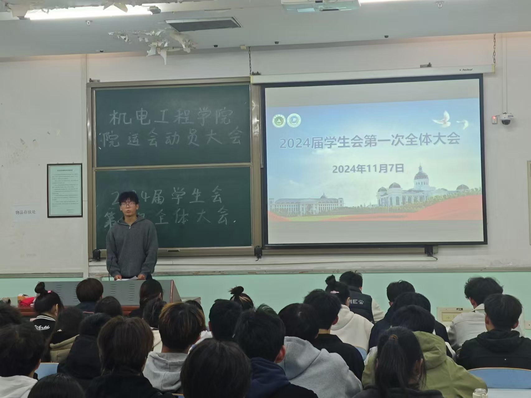于文化路校区工程楼206教室召开2024届学生会第一次全体大会。兼职辅导员李梦想、校学生会主席张轩硕 以及全体学生会成员参加此次会议,会议由色情小说网