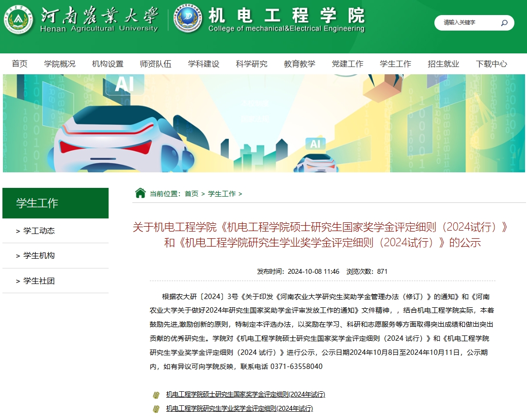 ◆制定并公示硕士奖学金评定细则和获奖情况