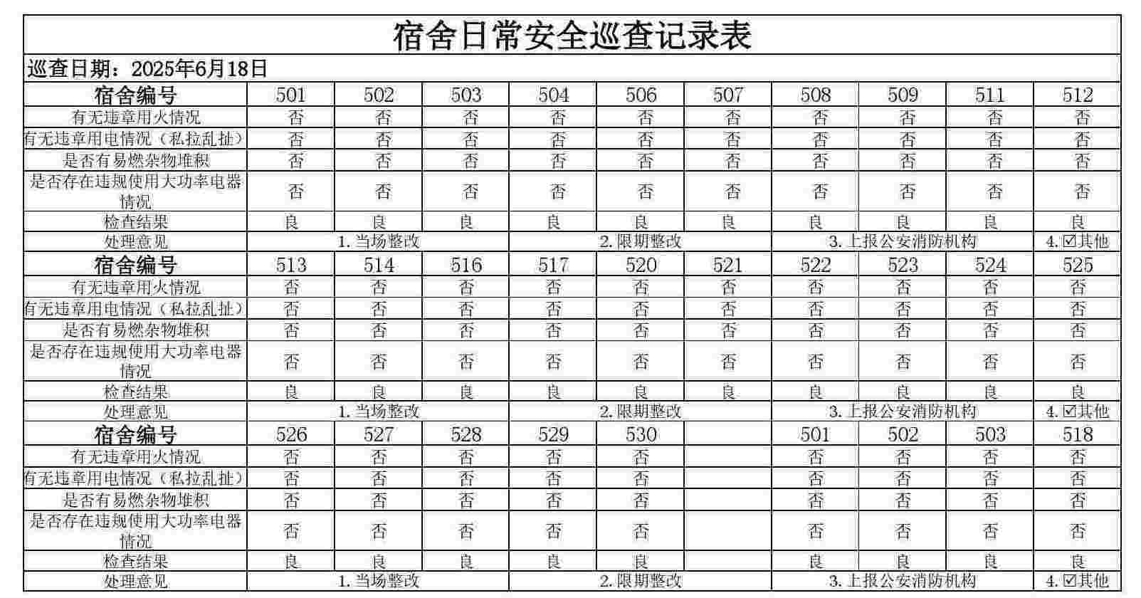 于2025年6月18日晚开展了学生宿舍安全卫生检查工作。现将检查情况总结如下: