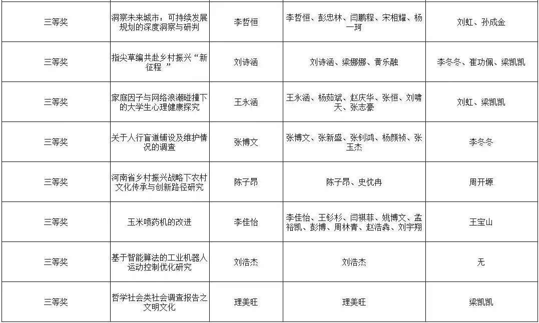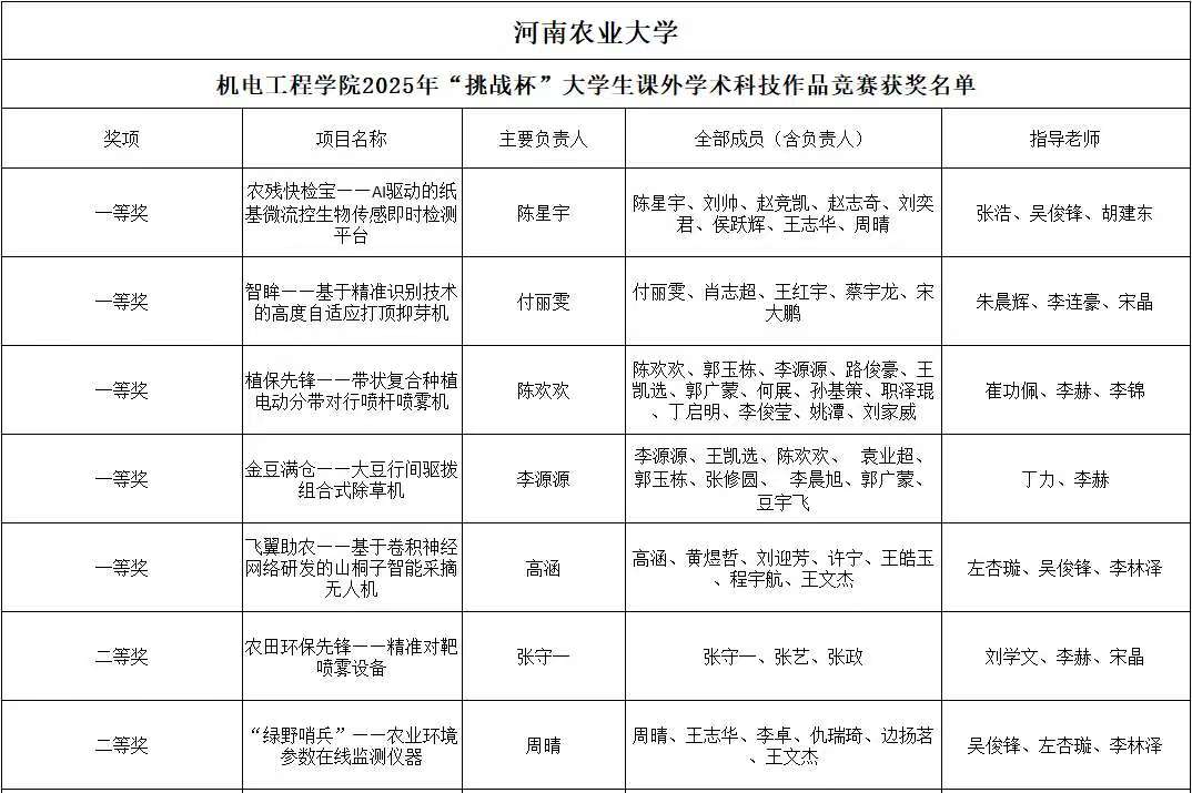 为贯彻落实党的二十大精神,立足新发展阶段、贯彻新发展理念、构建新发展格局、服务高质量发展,同时营造良好的校园创新氛围,展示色情小说网 学子风采。色情小说网 广泛动员广大师生参加色情小说网 2025年“挑战杯”大学生课外学术科技作品竞赛,最终评选出一等奖5名,二等奖8名,三等奖11名。现将获奖名单公示如下: