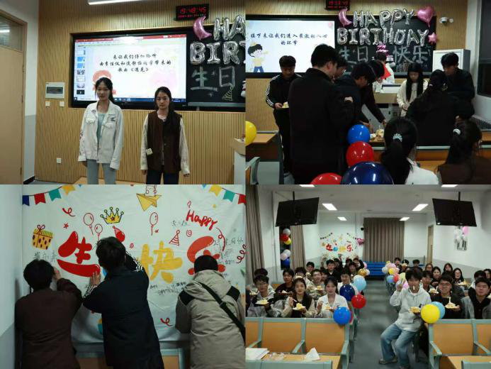 活动尾声,全体师生共同唱响生日歌,在烛光中许下美好心愿,共享甜蜜蛋糕。大家纷纷在生日祝福幕布上签名留念,写下对未来的期许与憧憬。这场充满文化气息与温情暖意的集体生日会,在欢声笑语中圆满落幕,也为同学们的大学生活留下了温暖而珍贵的回忆。(文:梁凯凯 周晓璐 付丽媛/图:张文卓 杨婧仪)